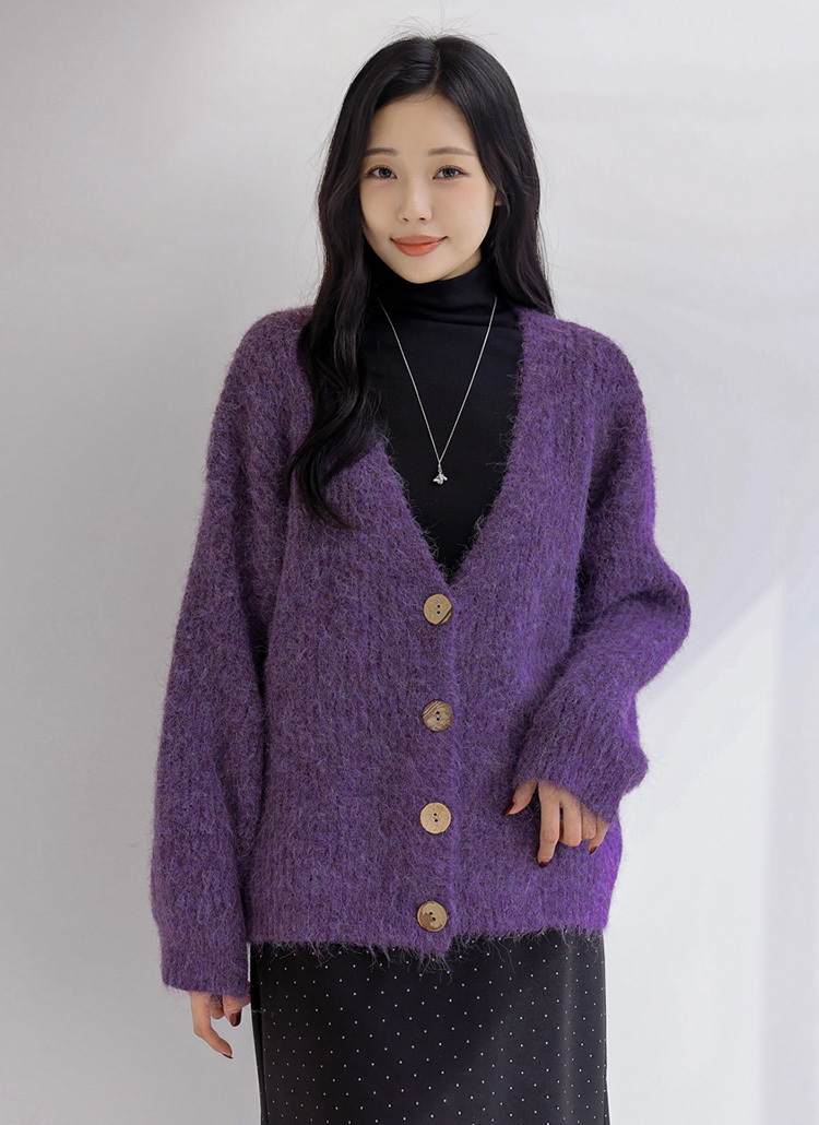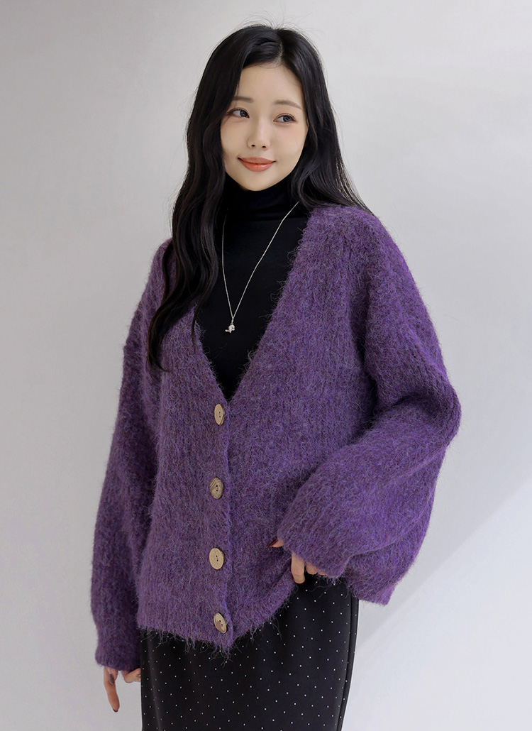 퍼지한 텍스처의 브이넥 버튼 가디건이에요 :)