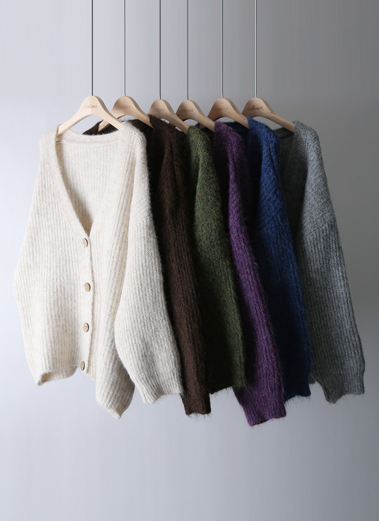 [THE ONME] ウッドボタン ウールブレンド ヘアリーニットカーディガン cd43006
