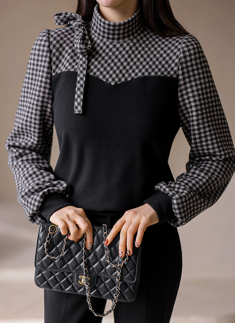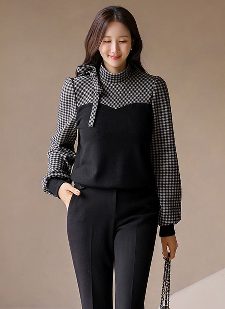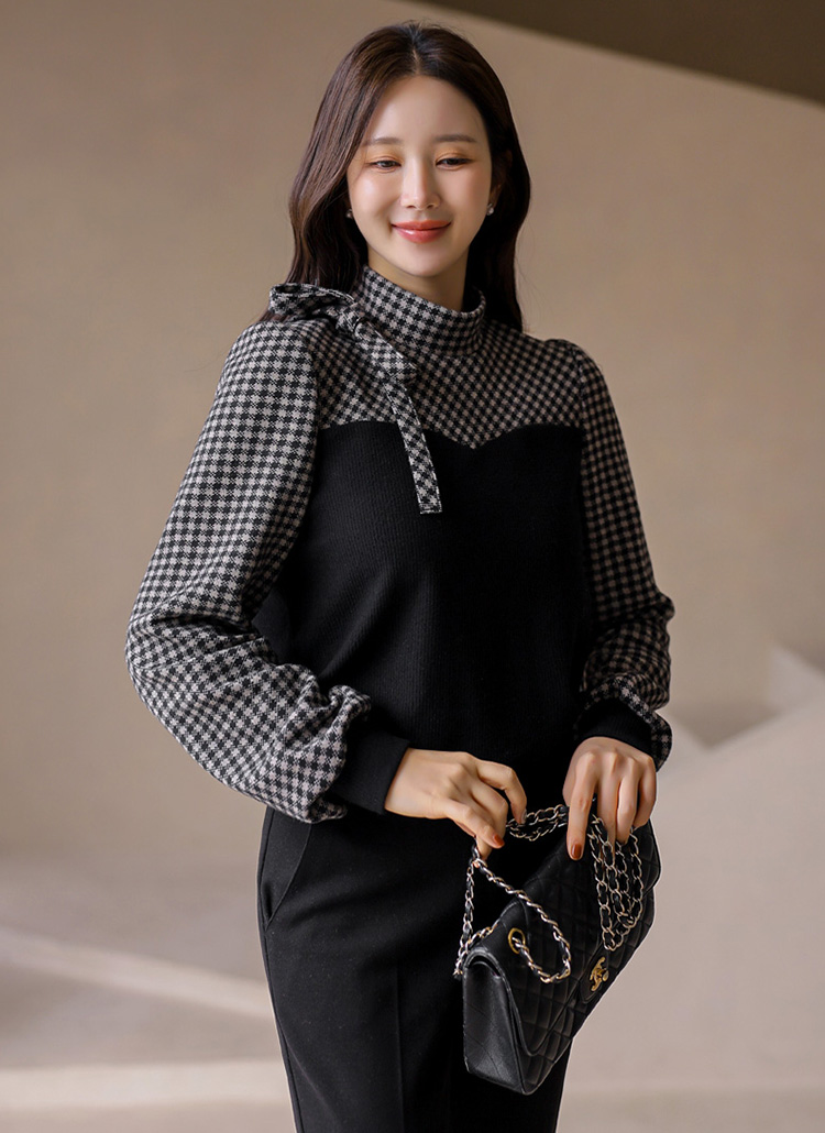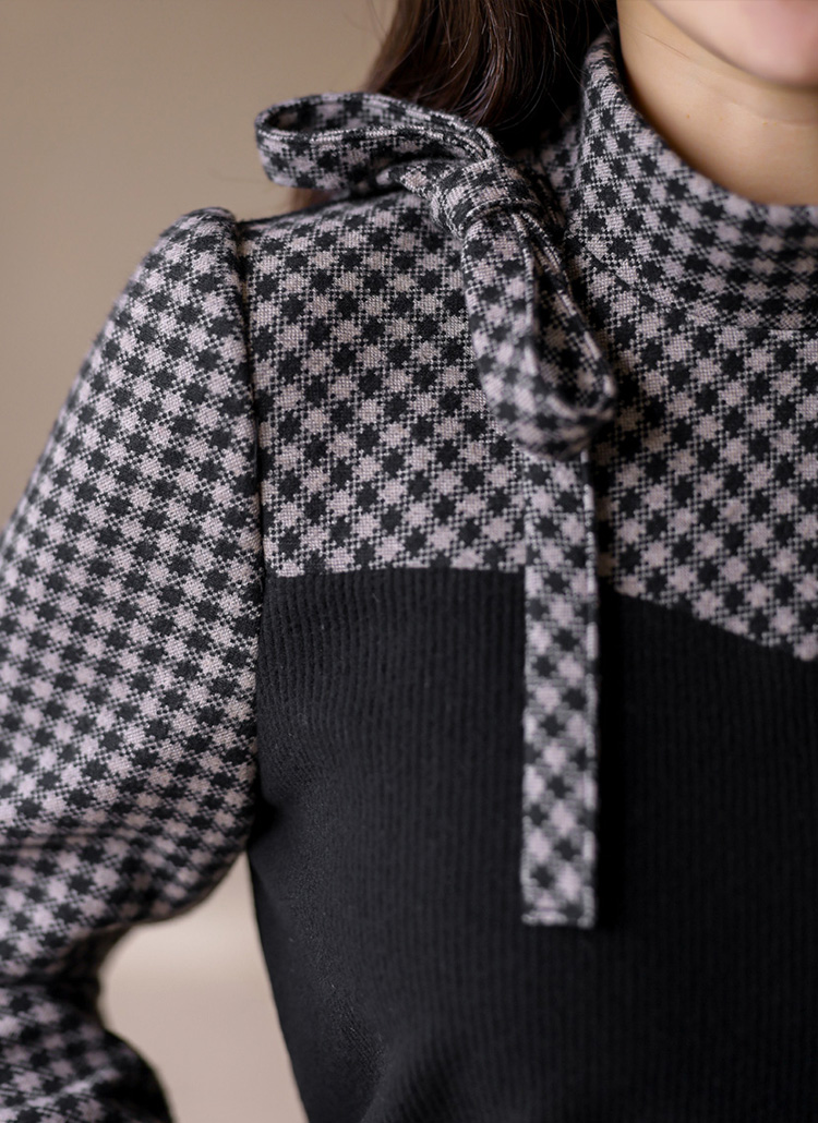 [LouisAngel] サイドリボンチェック配色プルオーバー bl43015