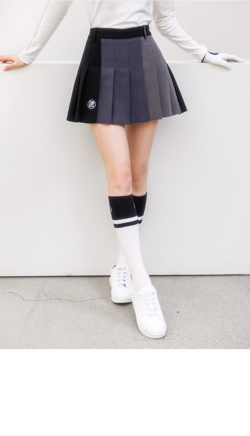 [QoG] モノトーンバイカラープリーツミニスカートsk43027