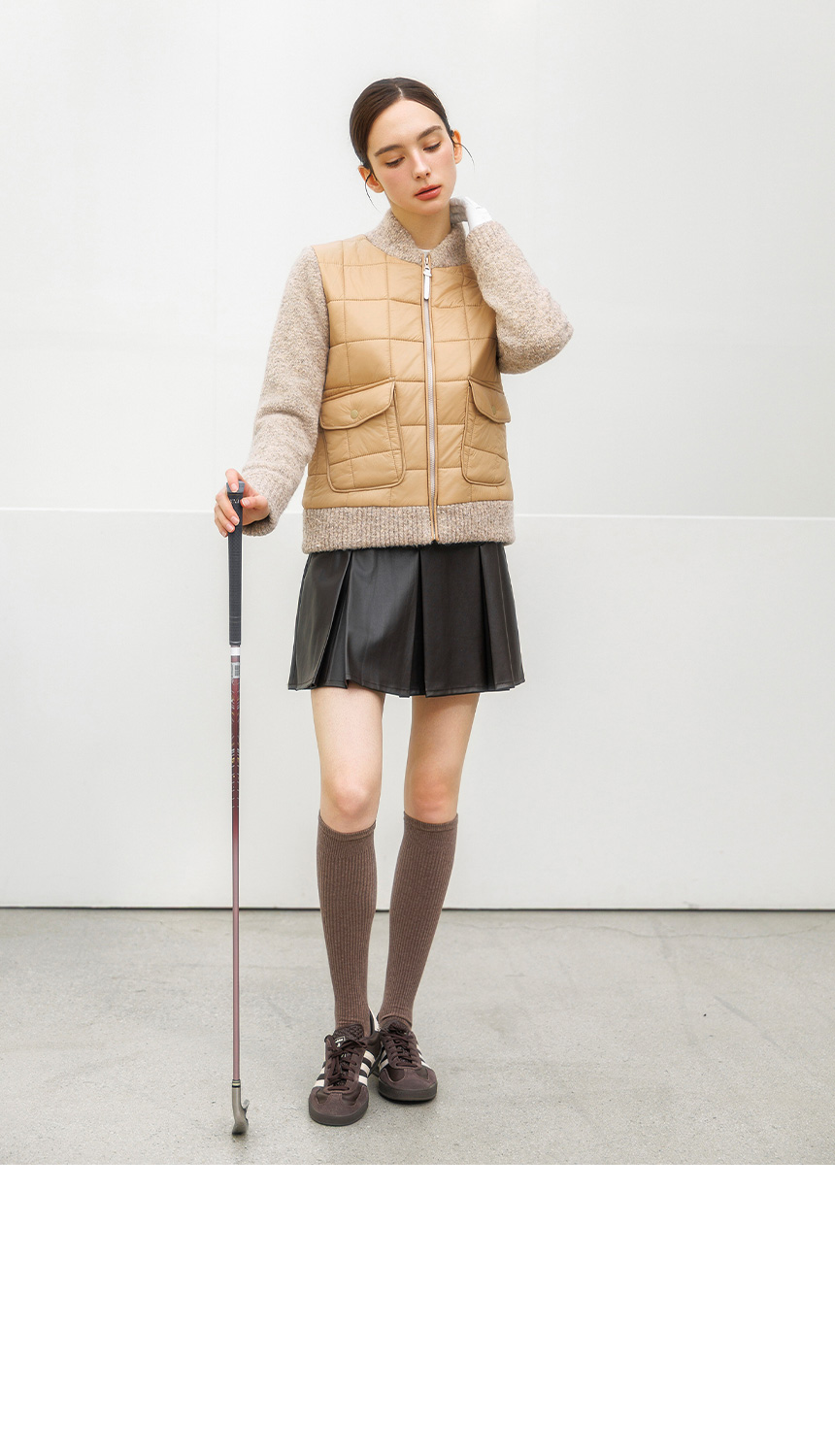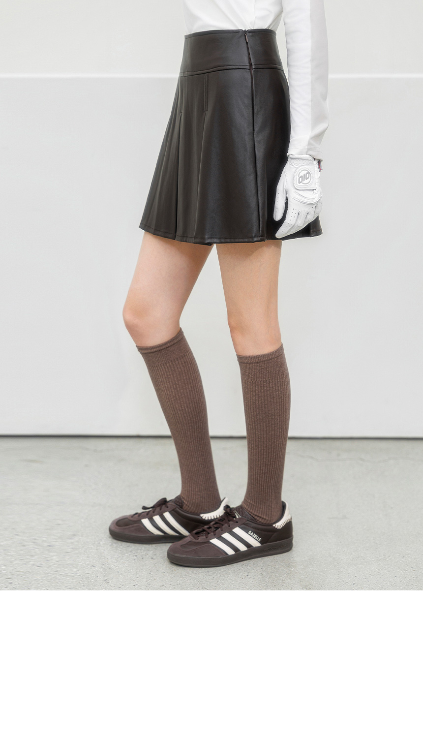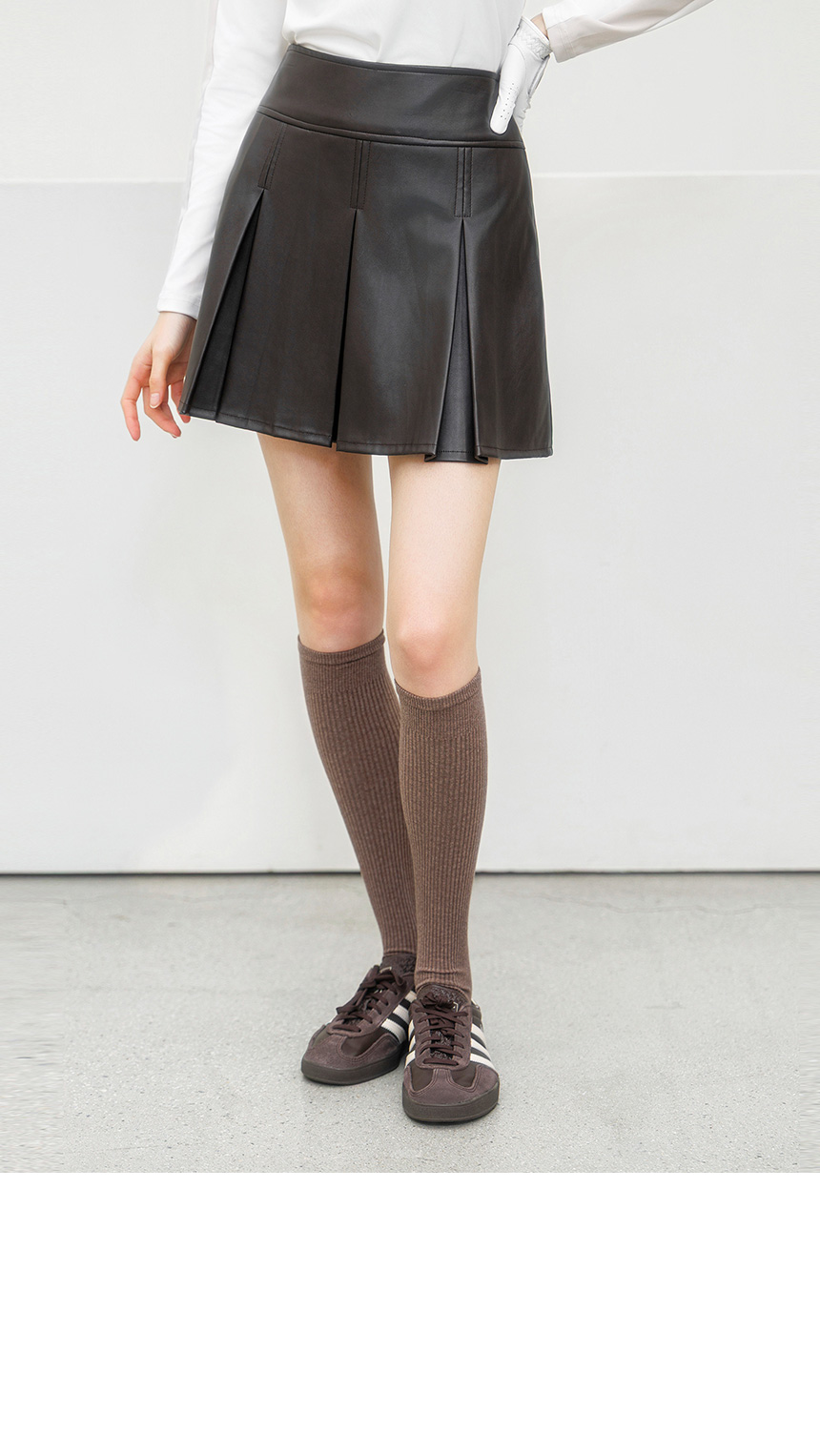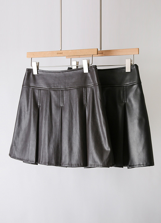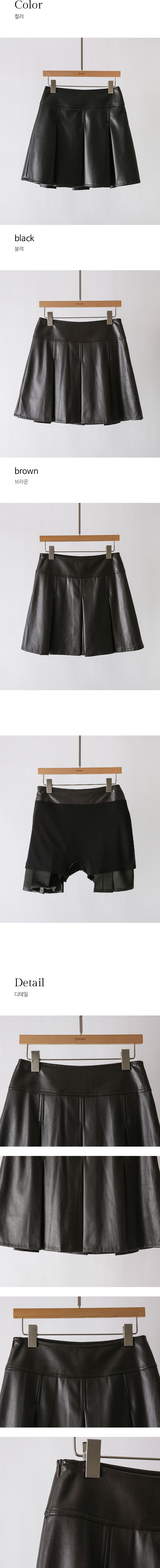 [QoG] インバーテッドプリーツフェイクレザーミニスカート sk43033 (インナーパンツ付き)
