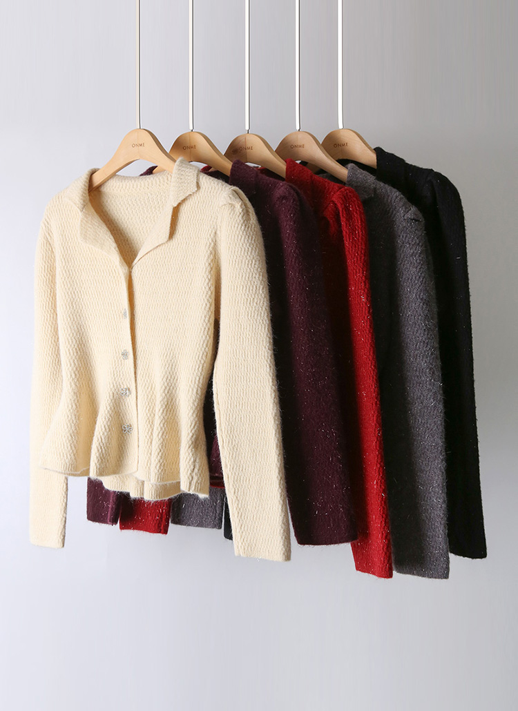 【5色展開】ビジューボタン ペプラムラメニットカーディガン cd43036