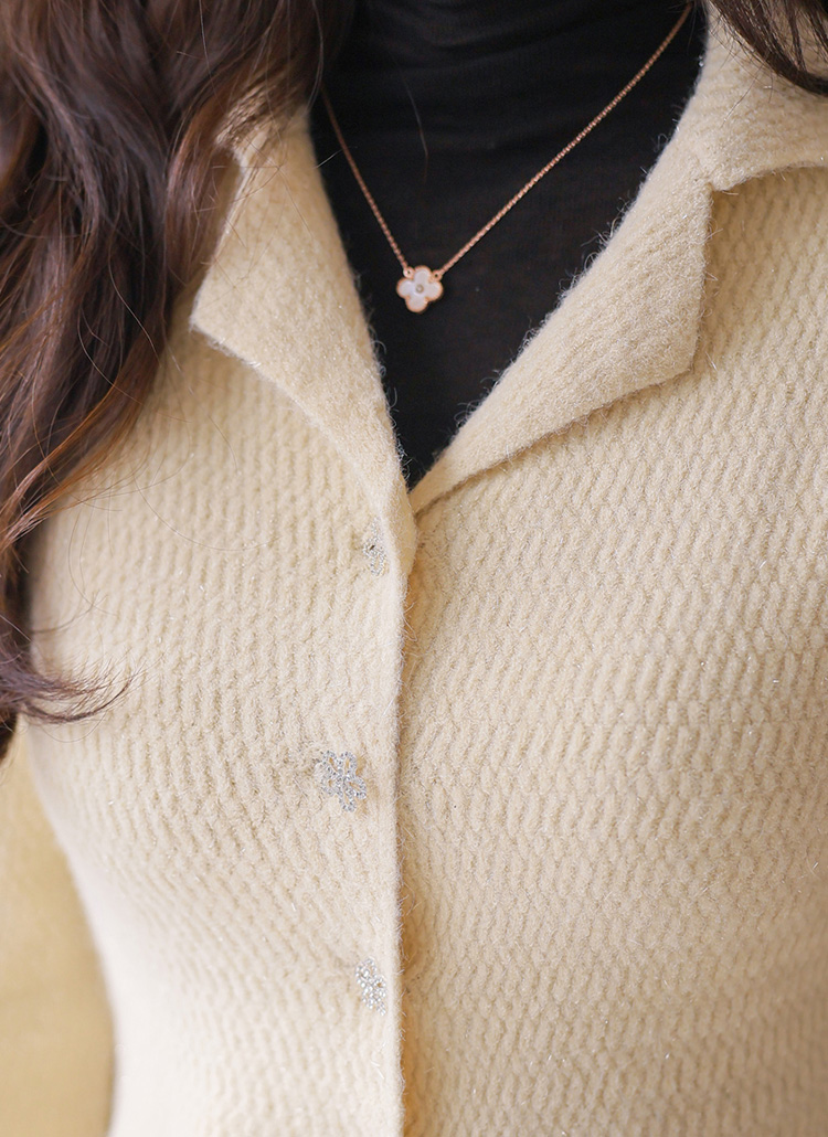 【5色展開】ビジューボタン ペプラムラメニットカーディガン cd43036