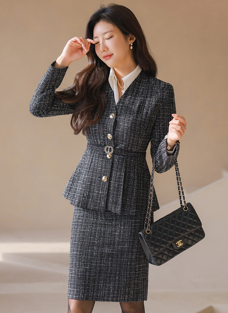 페미닌한 라인을 완벽히 살려주는 페플럼 트위드 자켓이에요