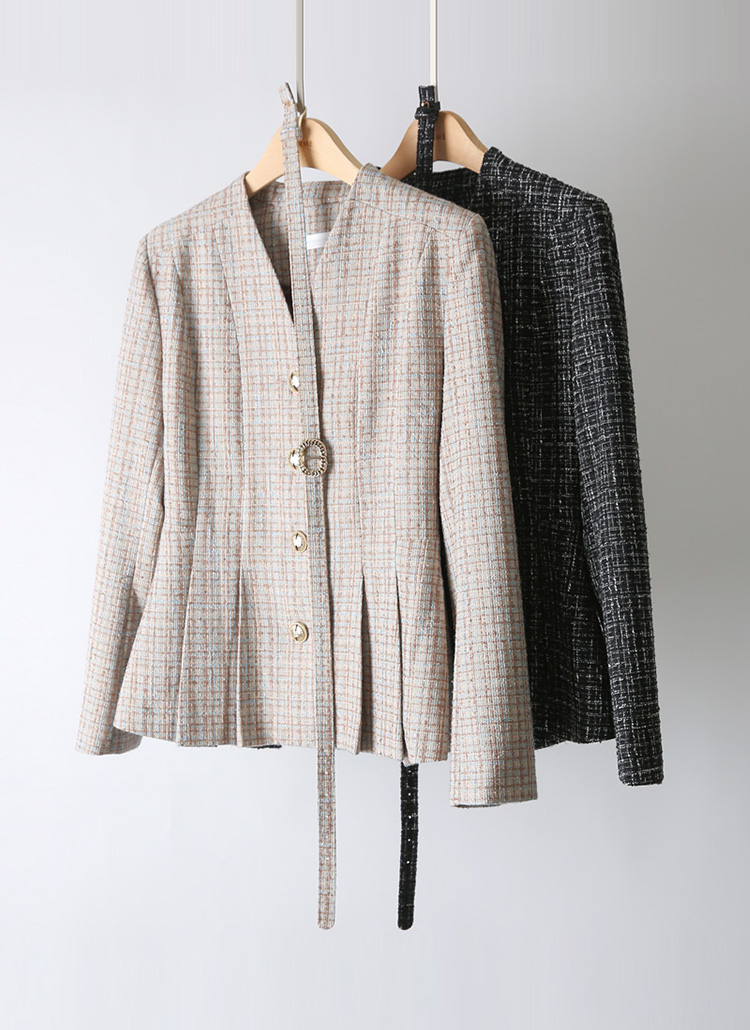 ベルト付きVネックラメツイードペプラムジャケット jk43039
