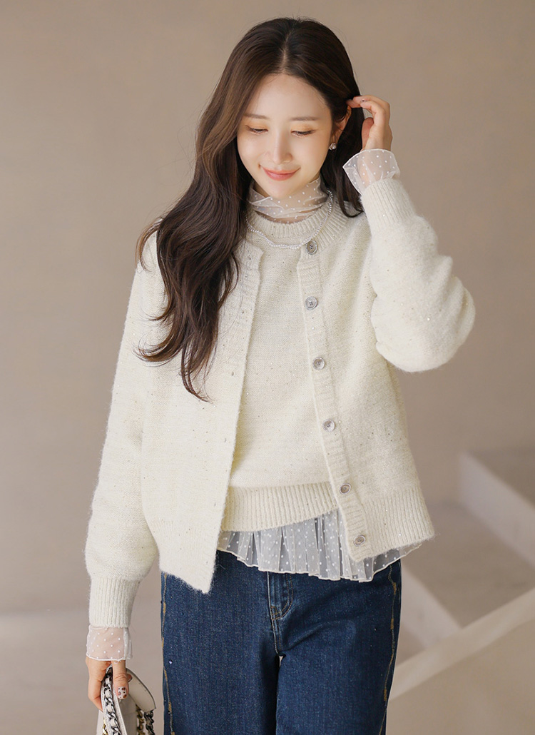 니트 조끼와 가디건이 세트로 구성되어