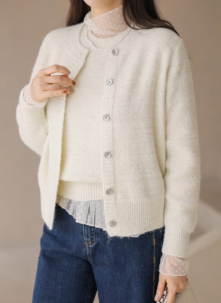【2点セット】スパンコール付きノースリーブニット&ニットカーディガン SET43060