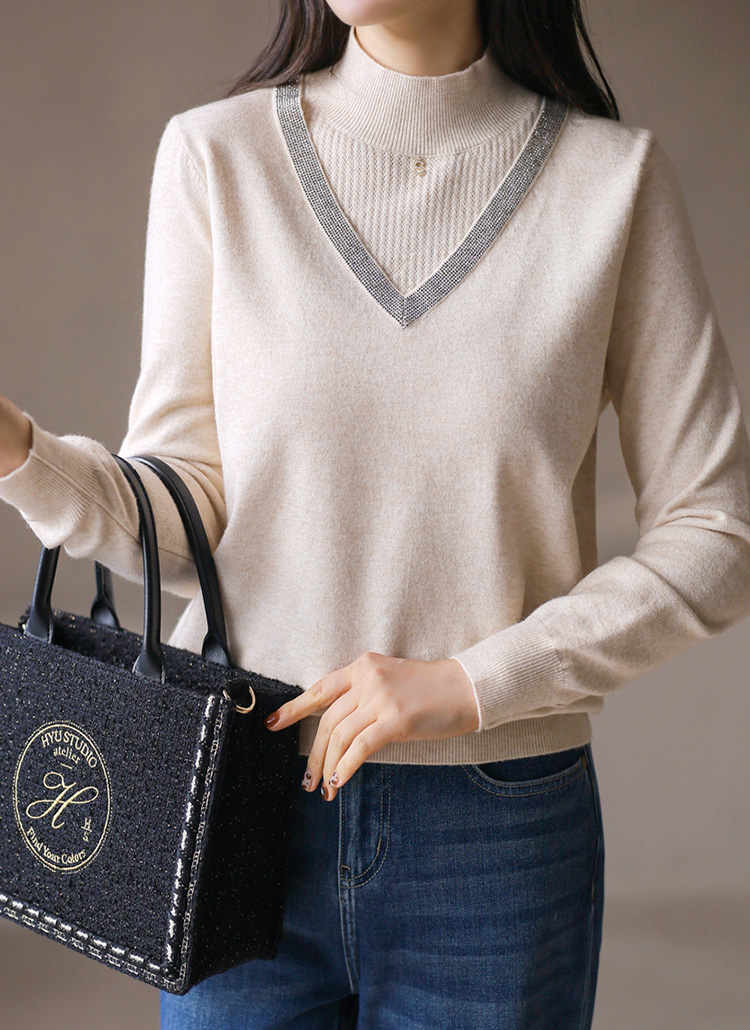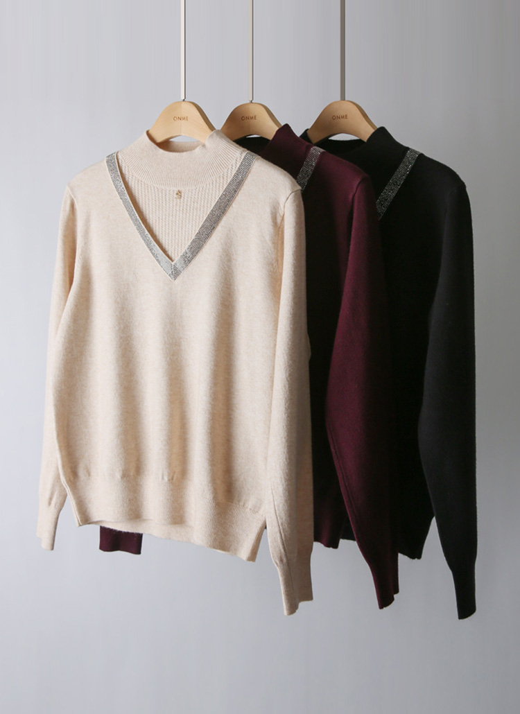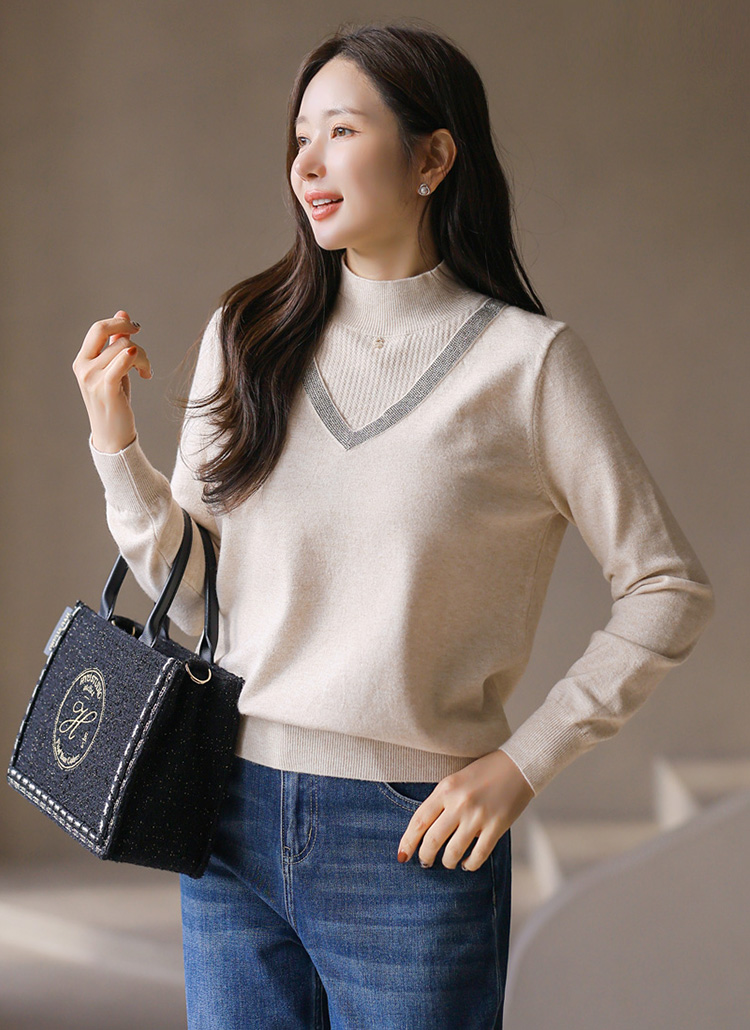 은은한 고급스러움이 느껴지는 레이어드 스타일 반하이넥 니트에요