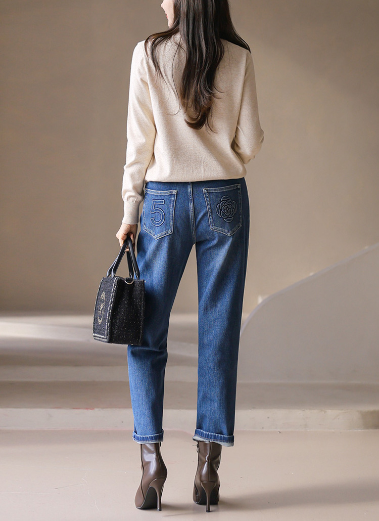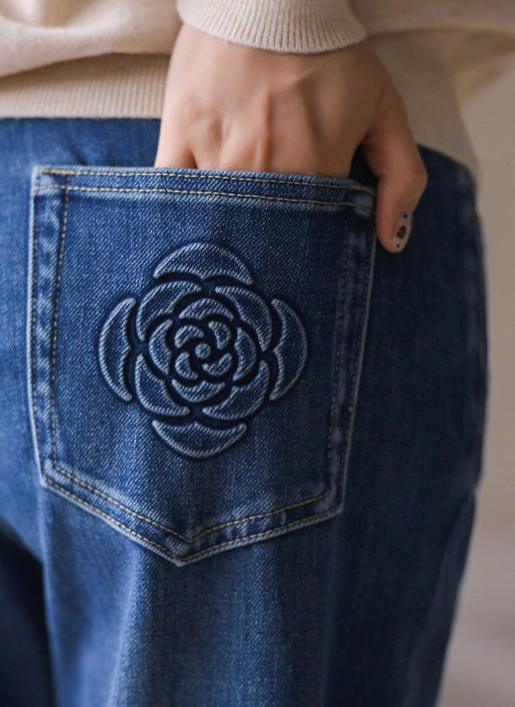 뒷 포켓의 플라워와 넘버5 엠보싱 디테일이