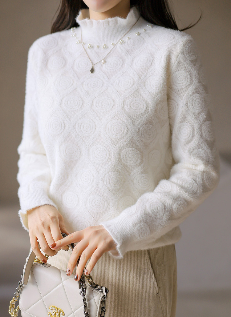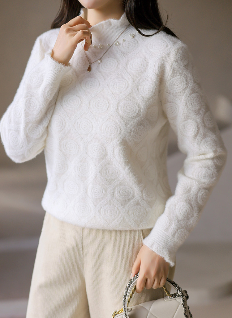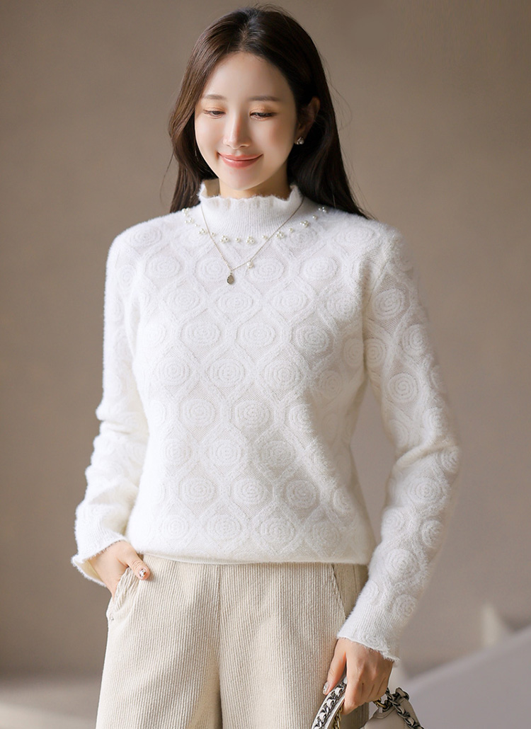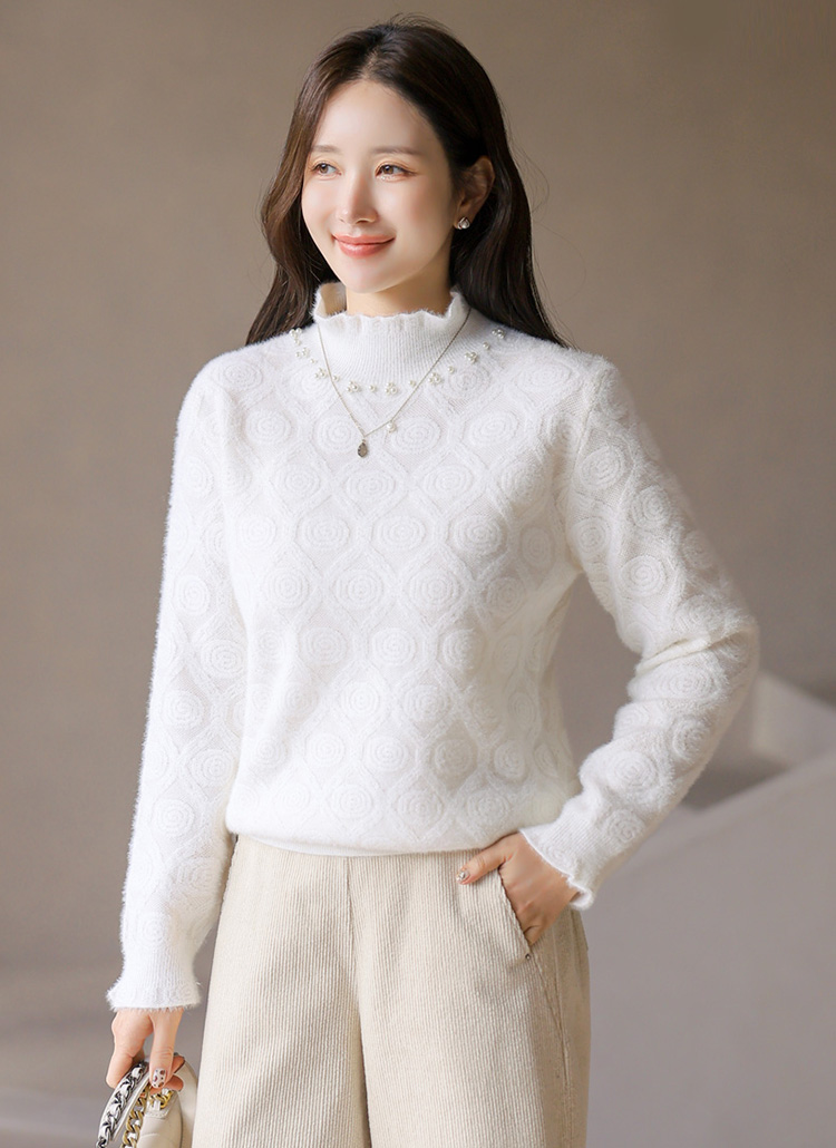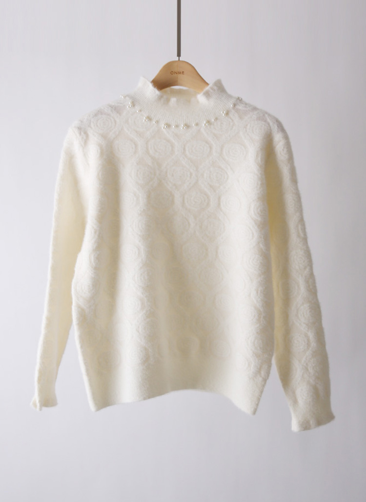 パール付き幾何柄ハイネックジャガードニットnt43087