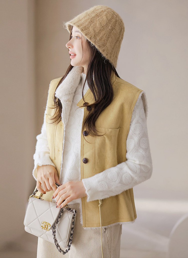 따뜻함과 스타일을 모두 잡은 감성 무스탕 조끼~