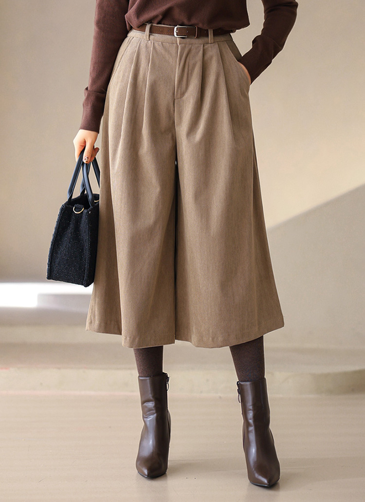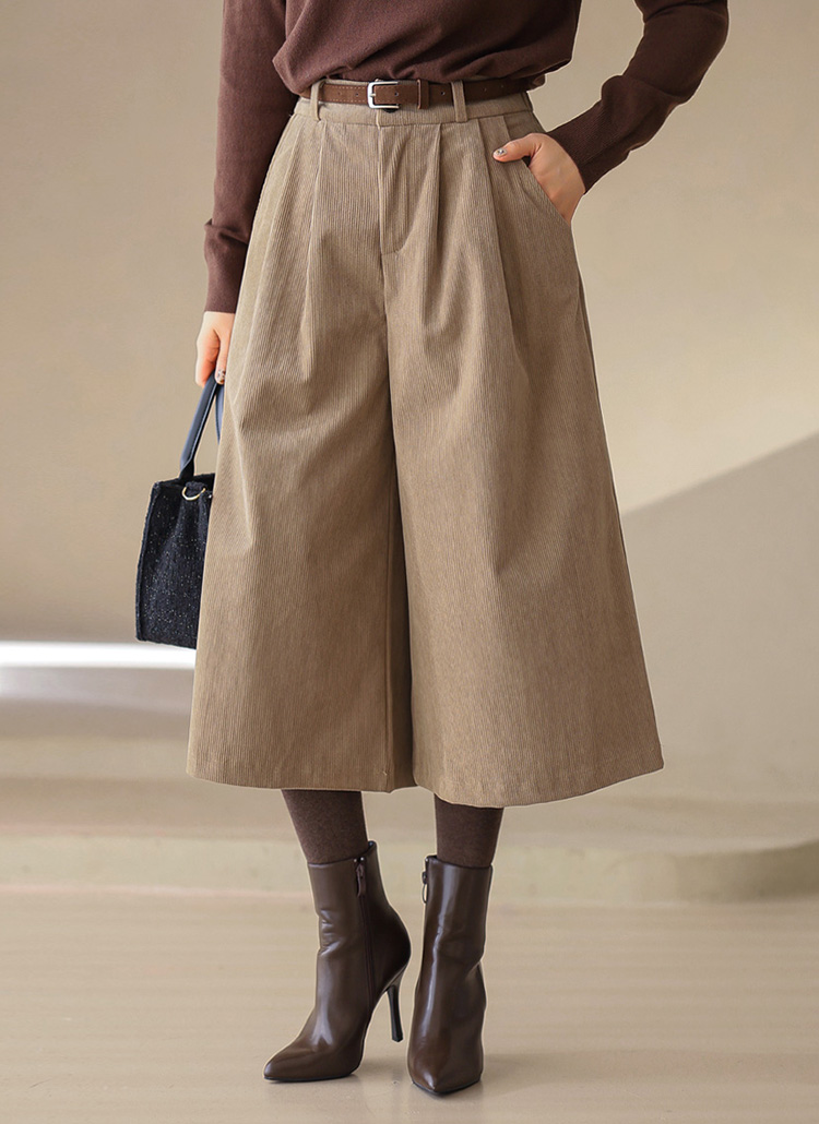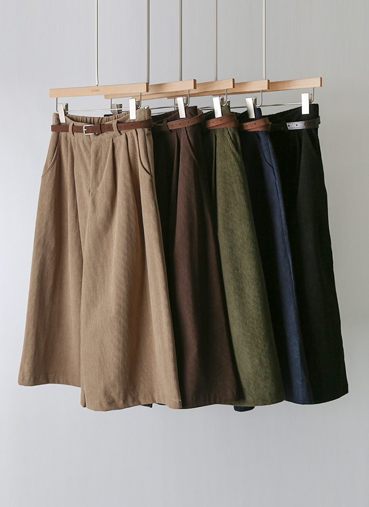 【5色展開】ベルト付き コーデュロイタックワイドハーフパンツ pt43099