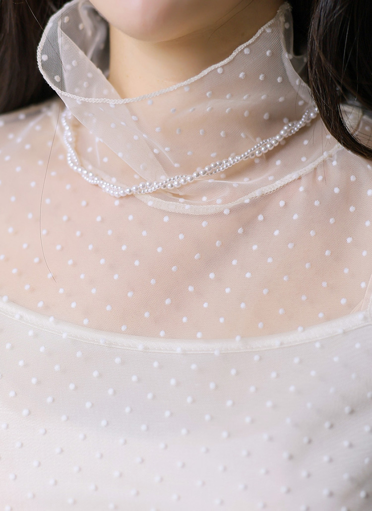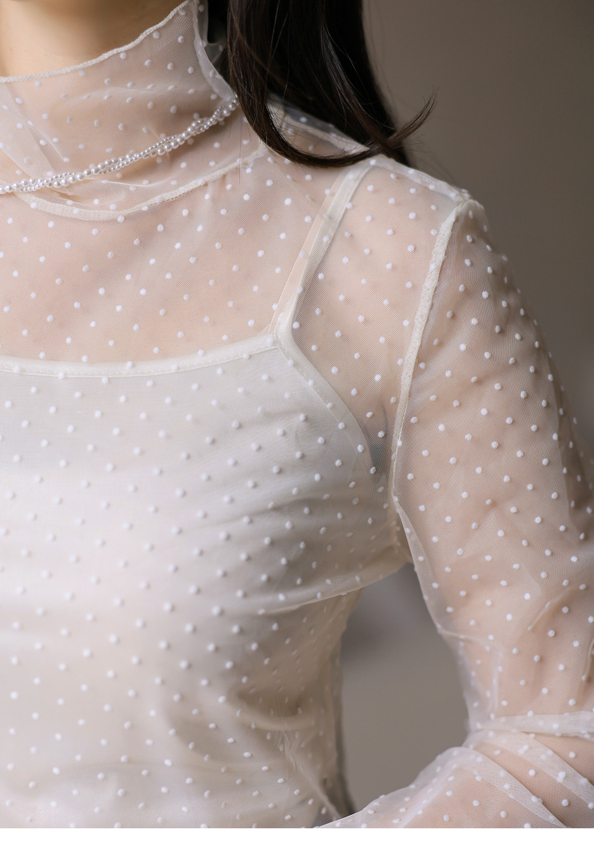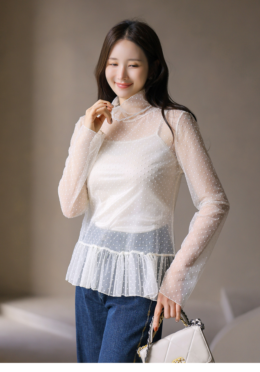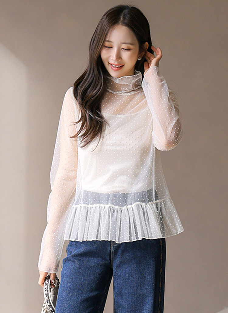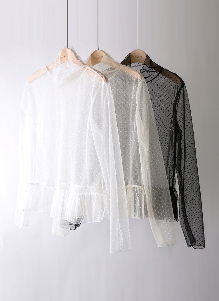 裾フリル ドット柄シースルーチュールレースプルオーバー bl43120