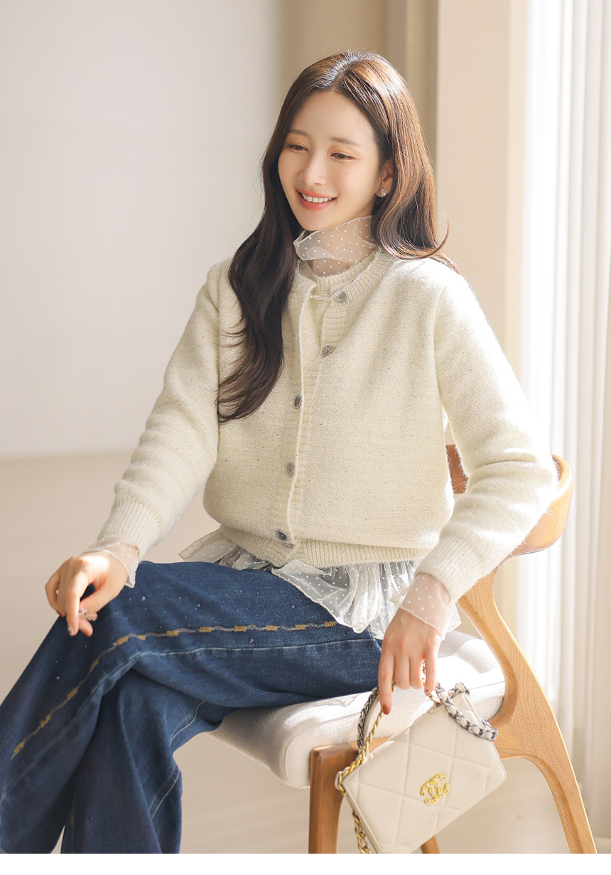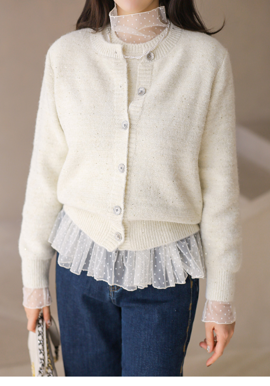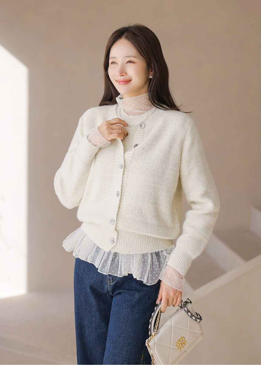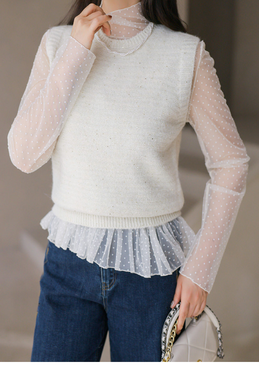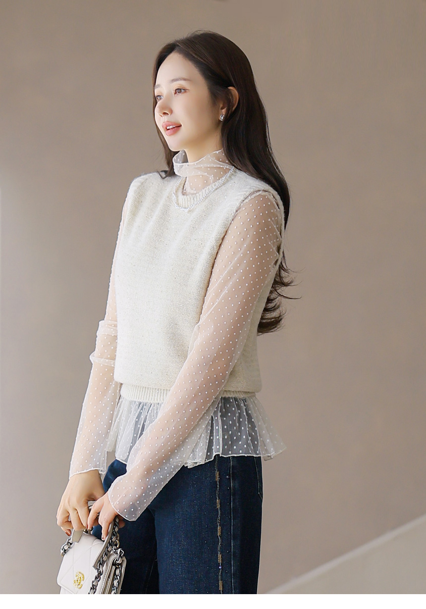 裾フリル ドット柄シースルーチュールレースプルオーバー bl43120
