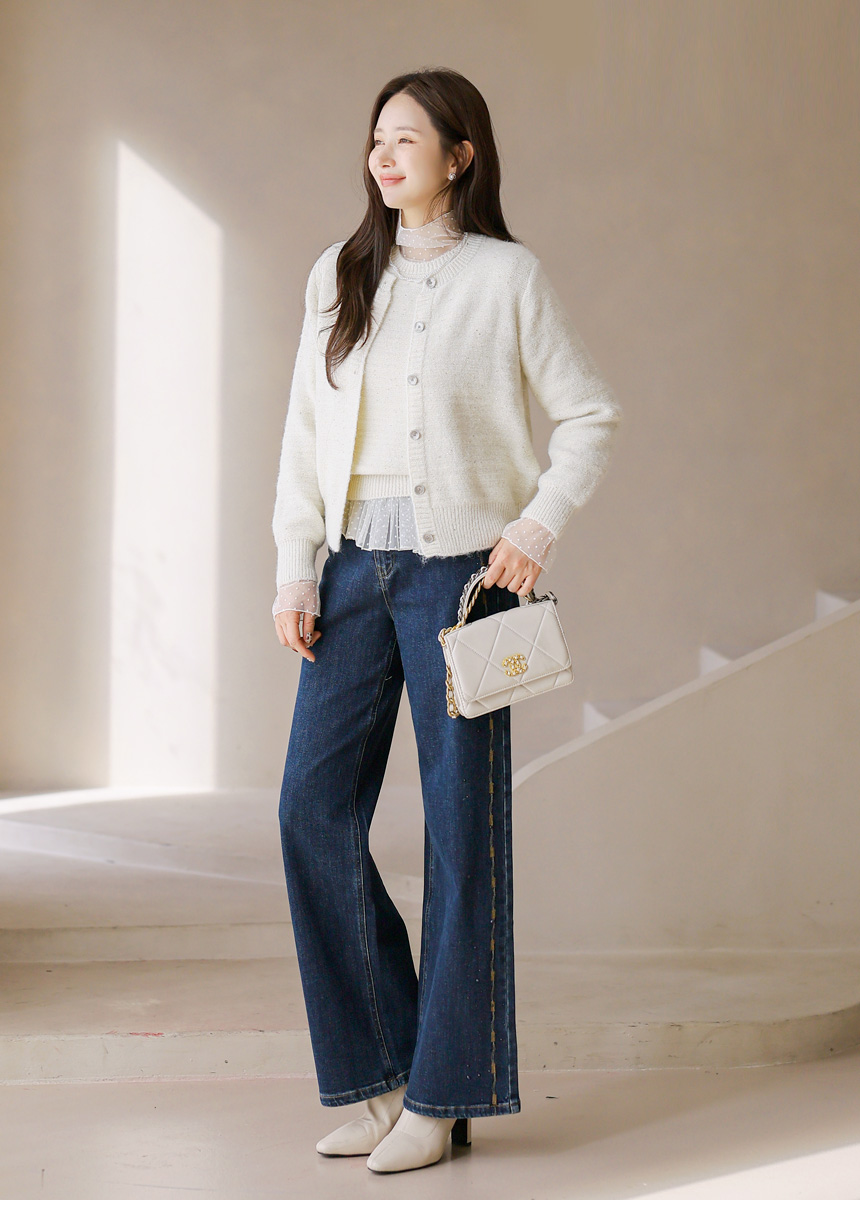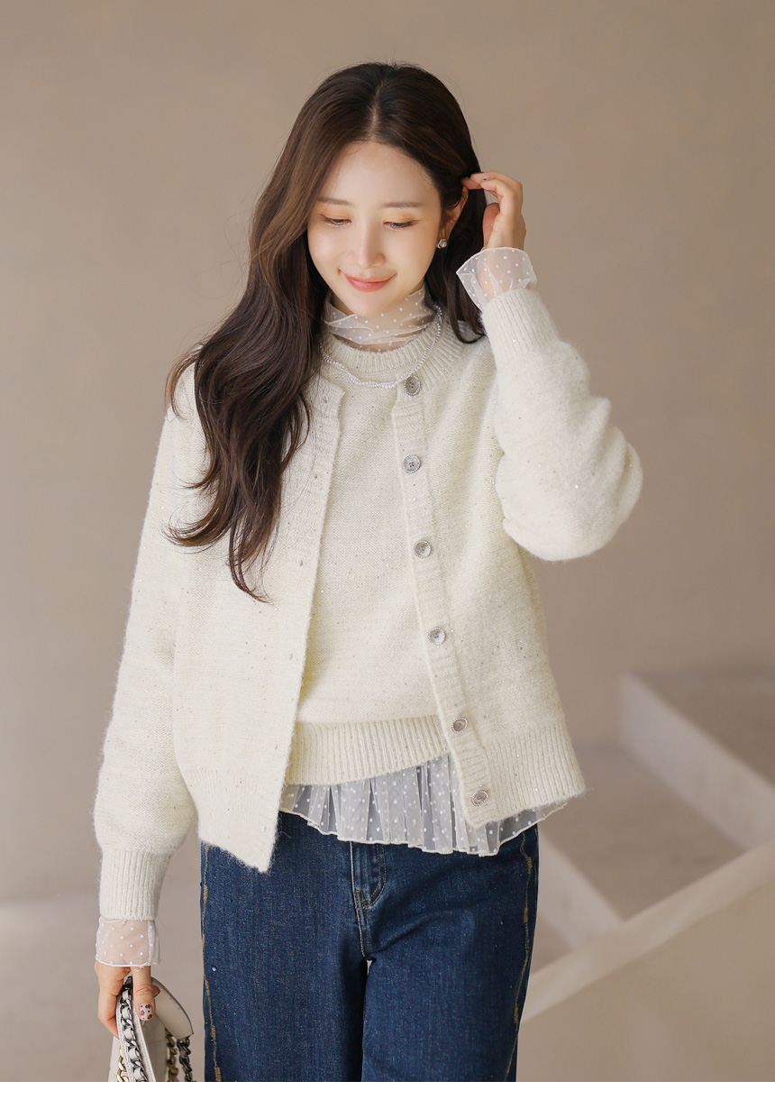 • 【2点セット】スパンコール付きノースリーブニット&ニットカーディガン SET43060
