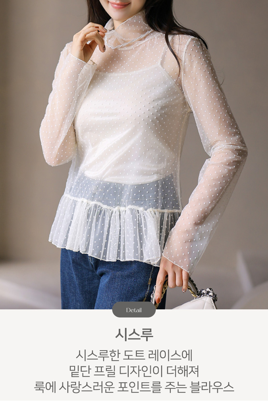 여리여리~ 스타일에 사랑스러운 무드를 더하는 도트 시스루 블라우스에요~