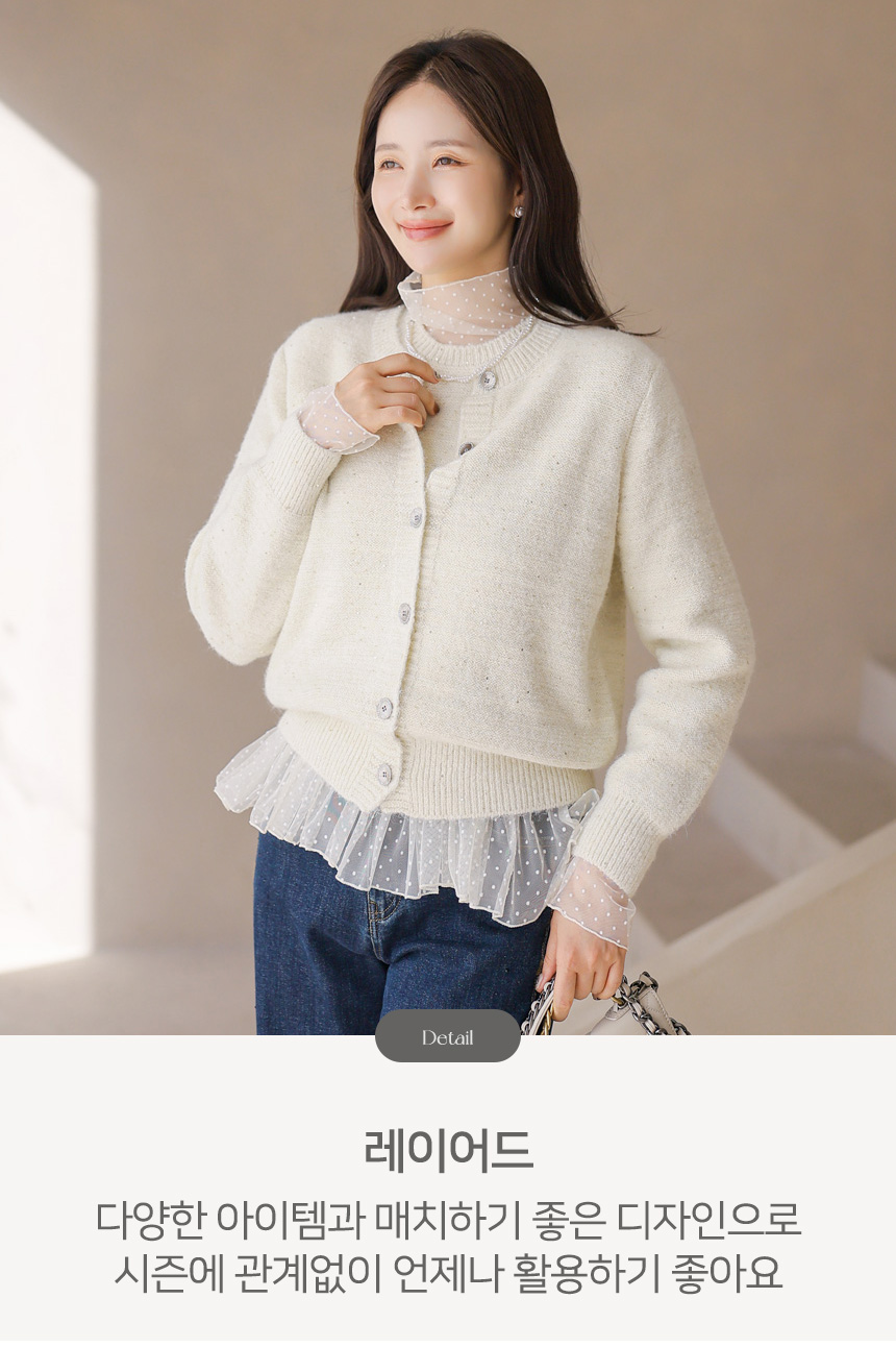 밑단의 프릴 디테일은 움직임에 따라 가볍게 하늘거리며