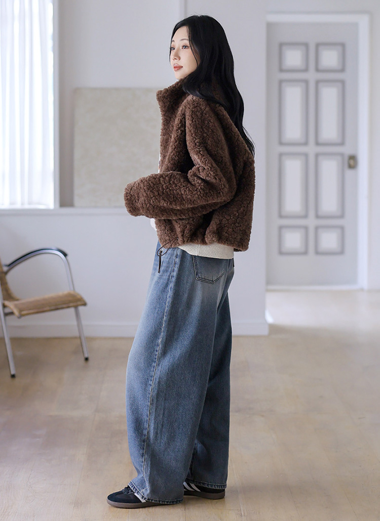 뽀글이 퍼 세미크롭 루즈핏 집업 자켓이에요 :)
