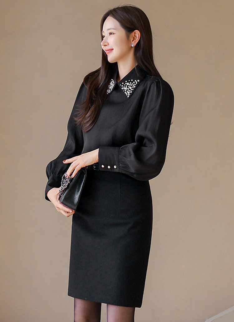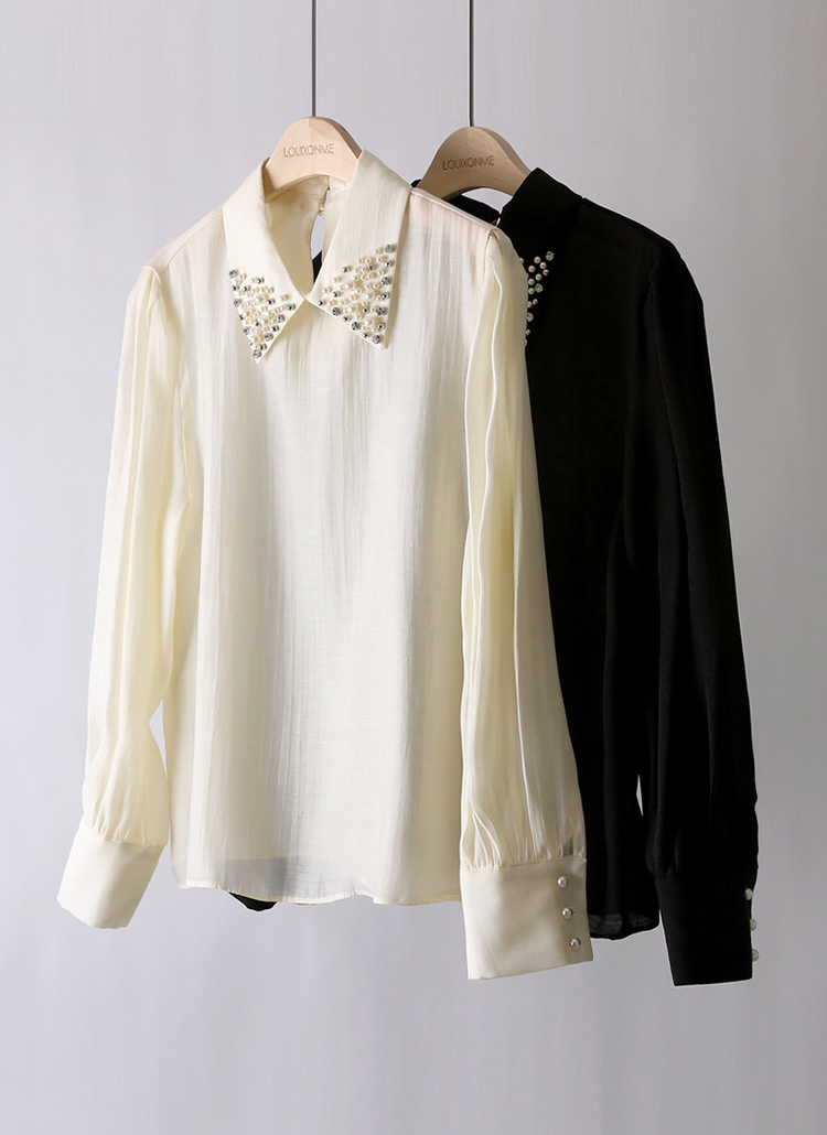 パールビジュー襟シャイニーサテンブラウス bl43135
