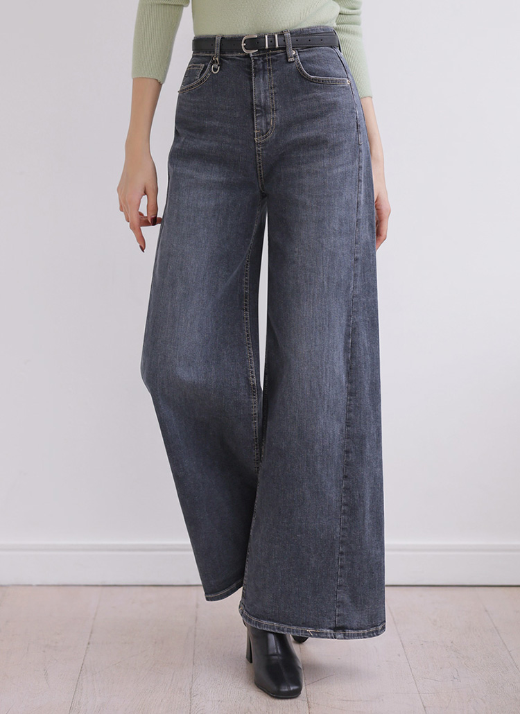 와이드하면서도 자연스럽게 퍼지는 플레어 실루엣으로