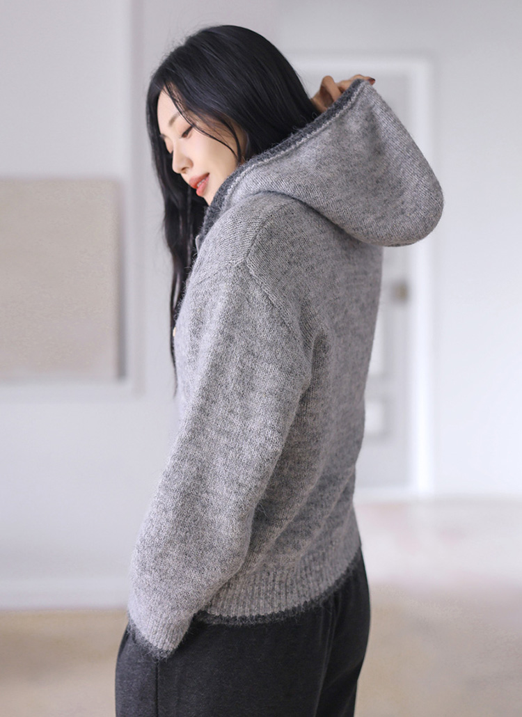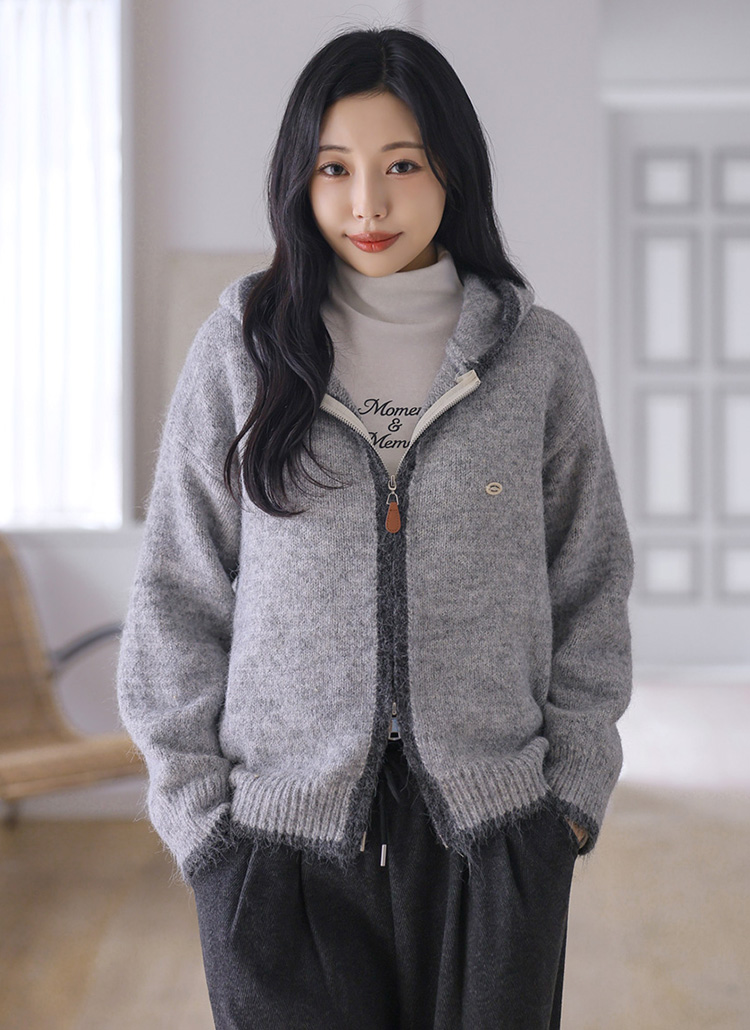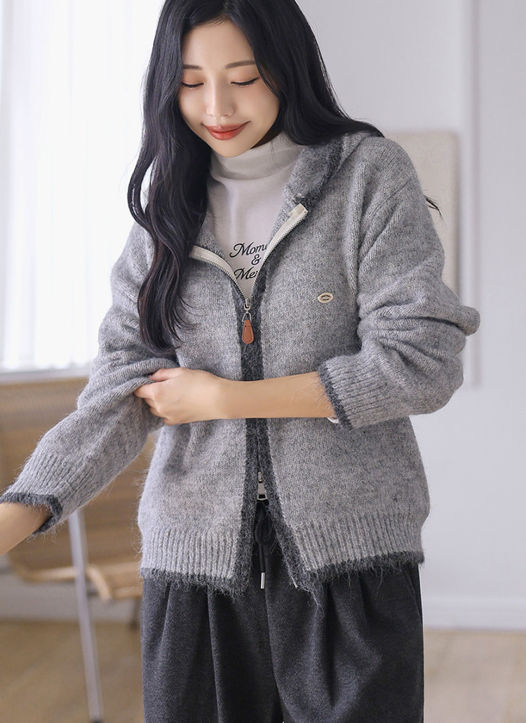 투웨이 집업 후드 울 니트 가디건이에요 :)