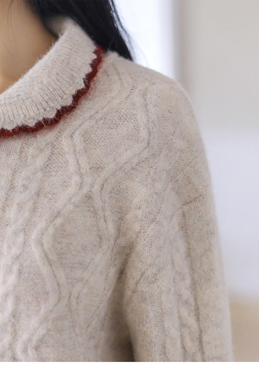 포근한 터치감의 울 혼방 니트에 케이블 짜임이 더해져
