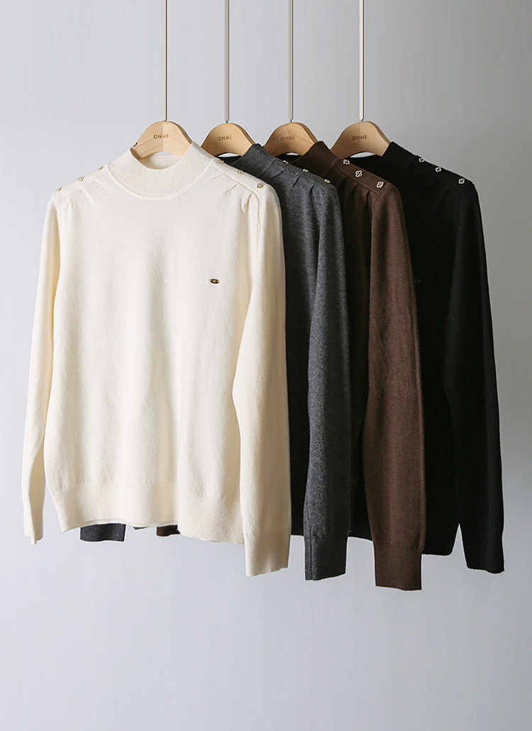 ショルダーボタン シャーリング ハイネックニット nt43243