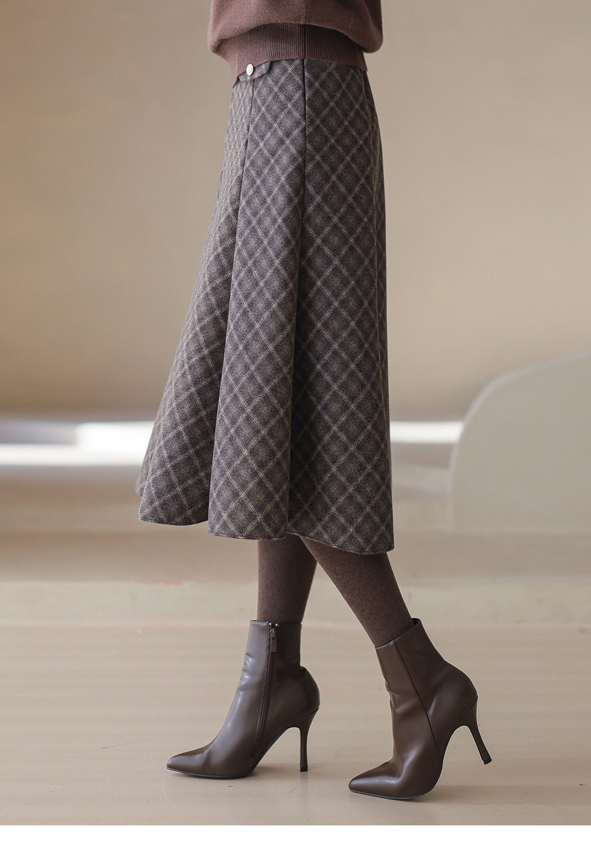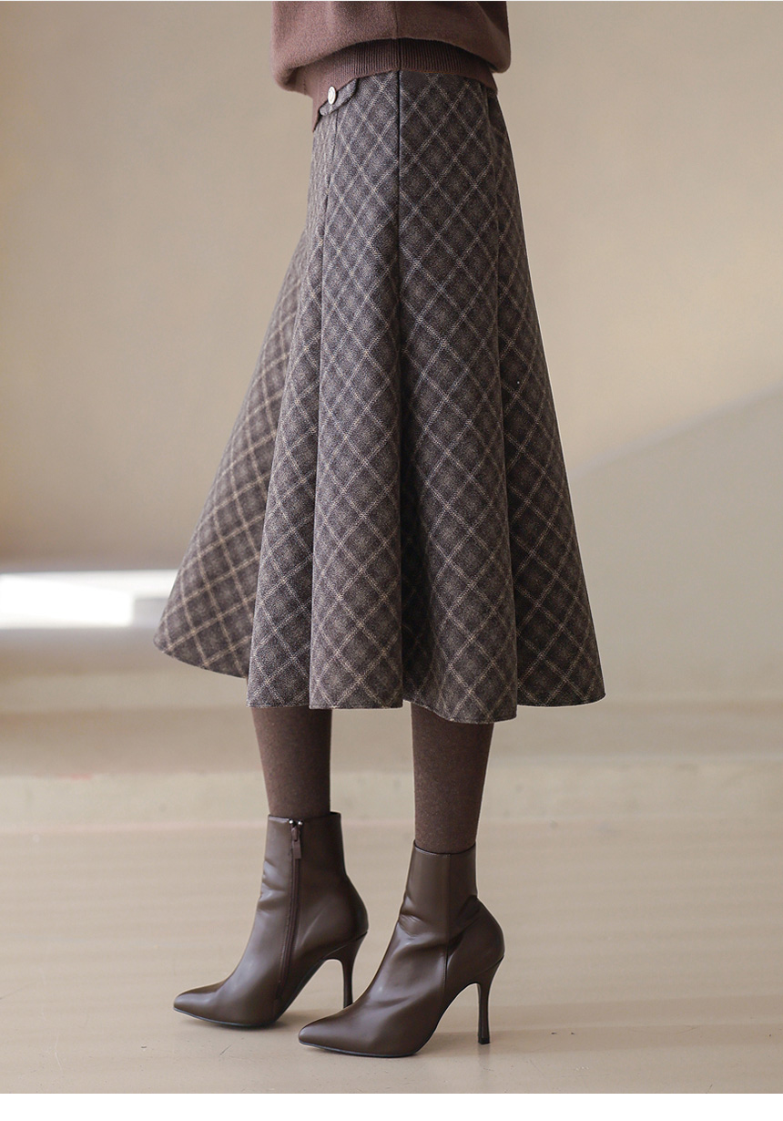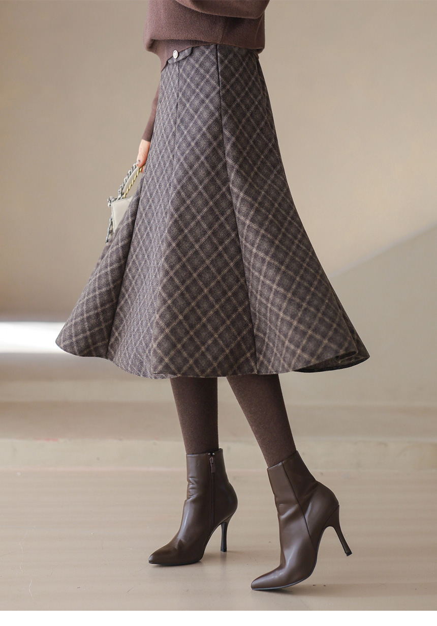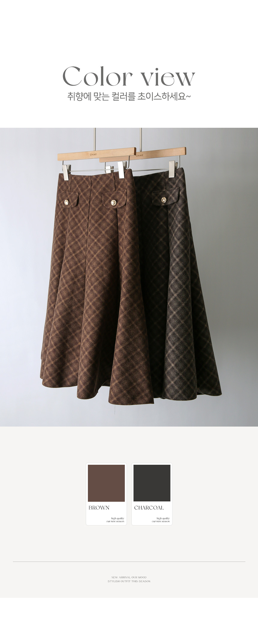 따뜻하고 세련된 감성의 타탄 체크 플레어 롱 스커트에요