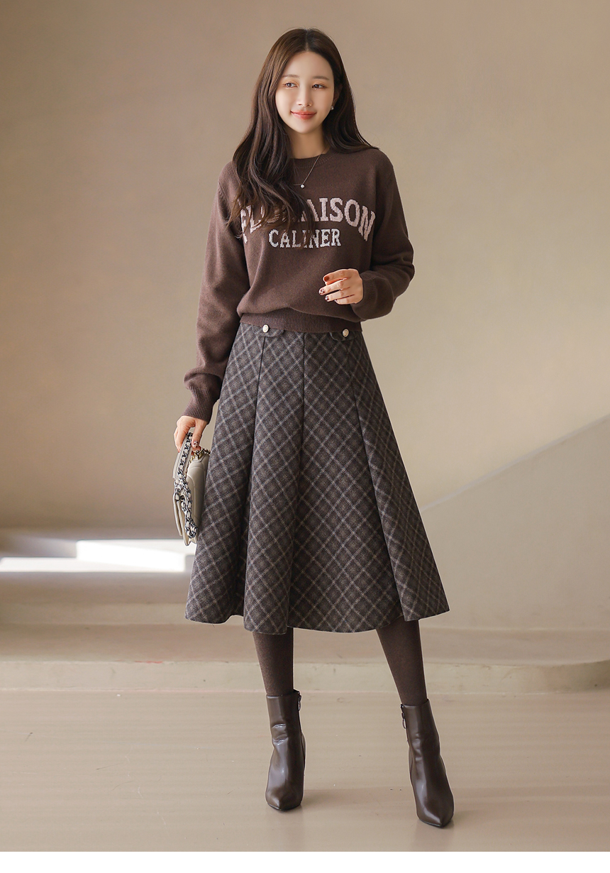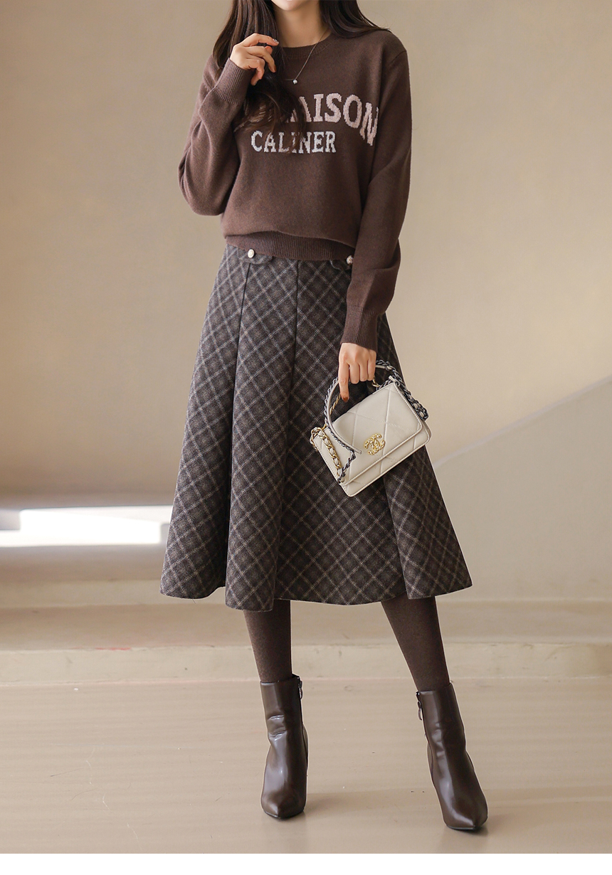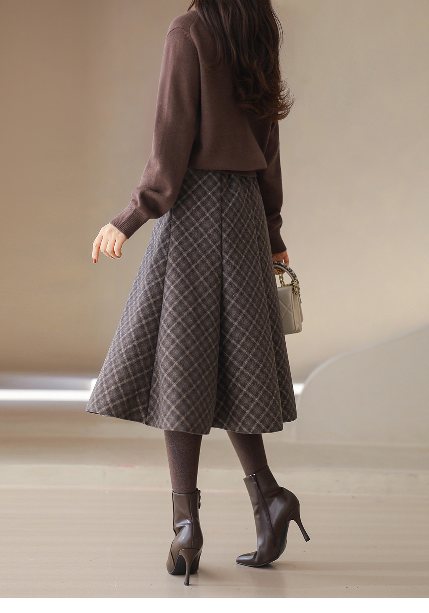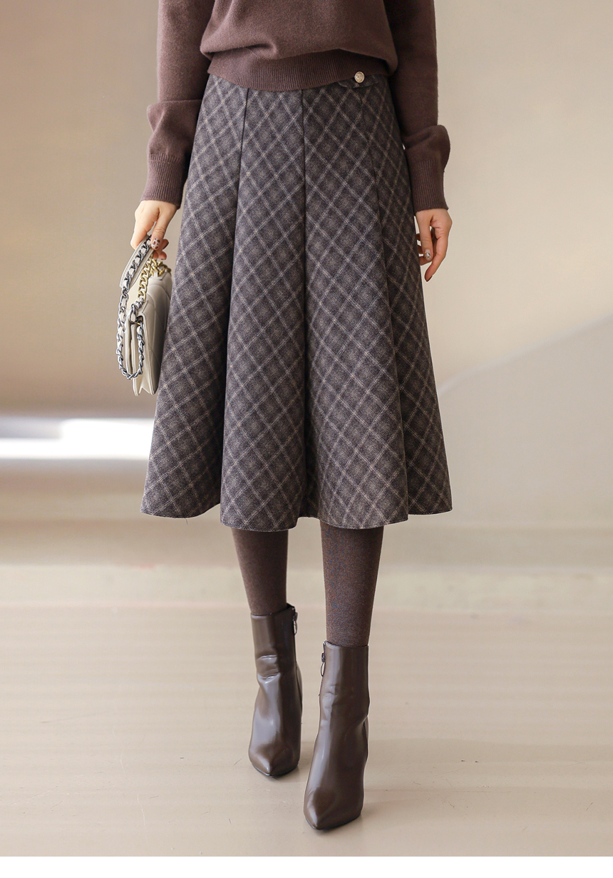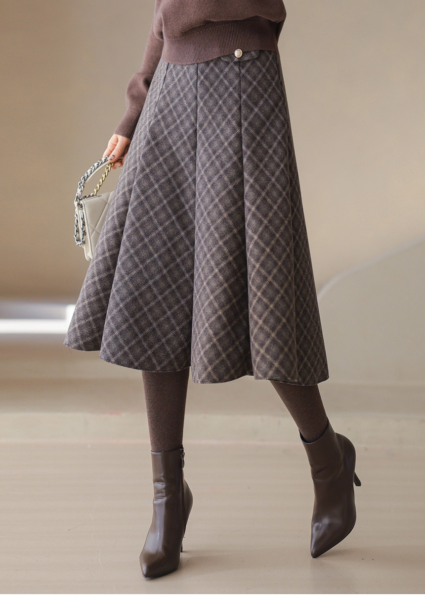따뜻하고 세련된 감성의 타탄 체크 플레어 롱 스커트에요