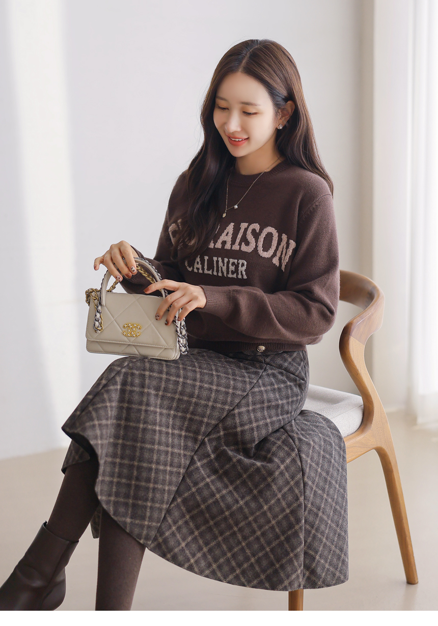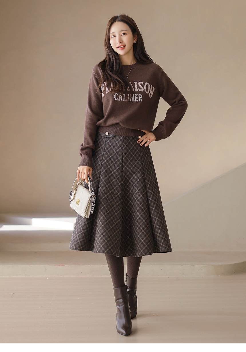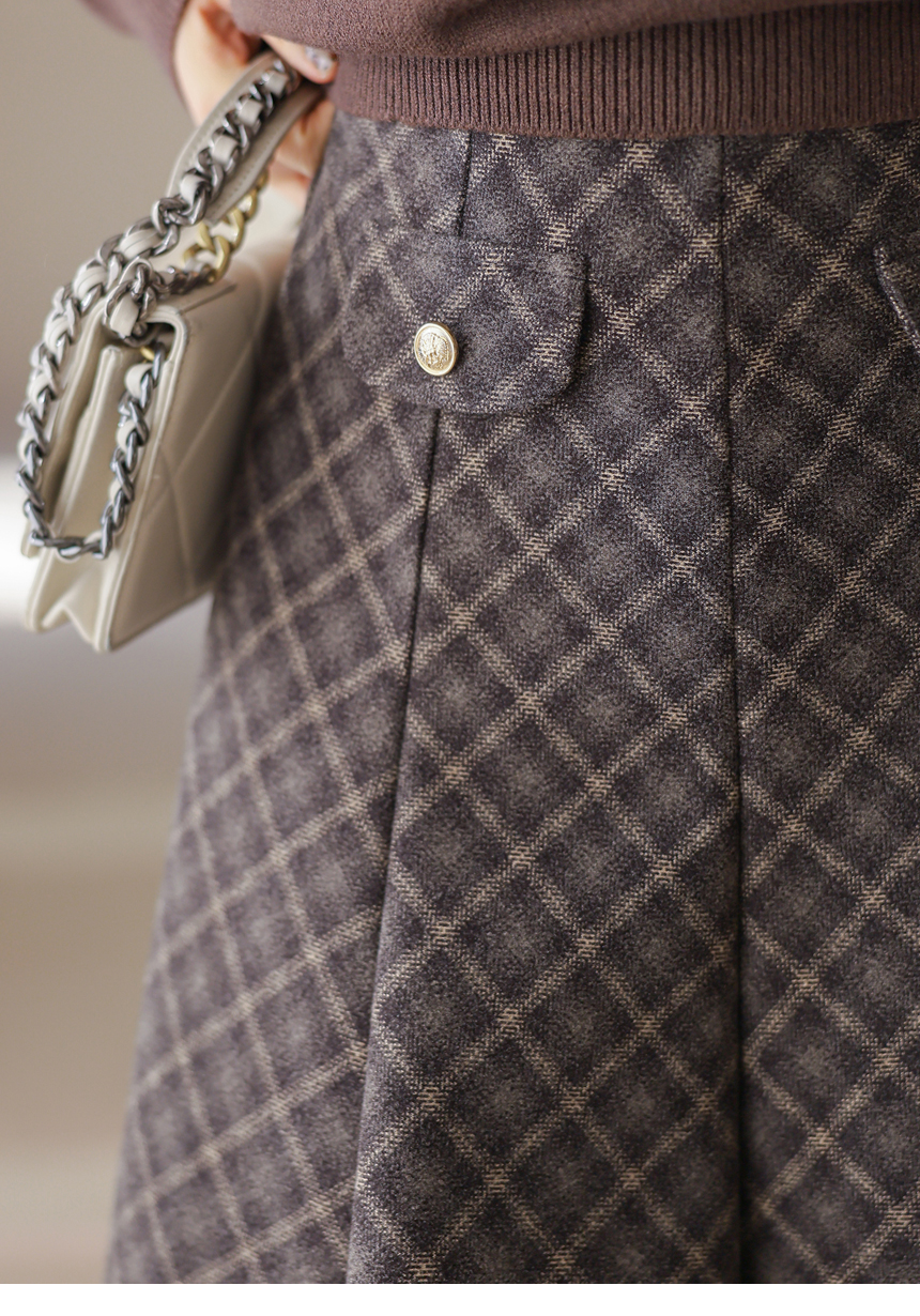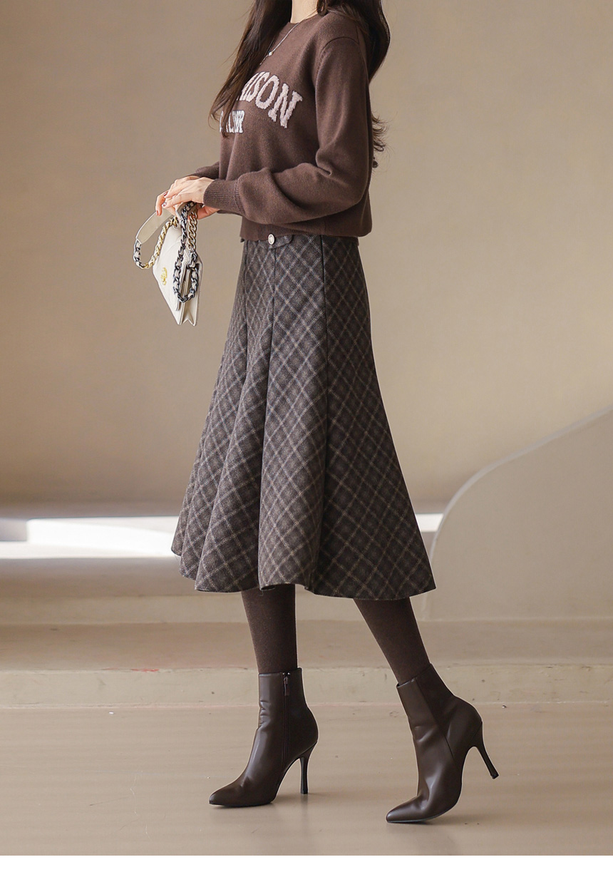 따뜻하고 세련된 감성의 타탄 체크 플레어 롱 스커트에요