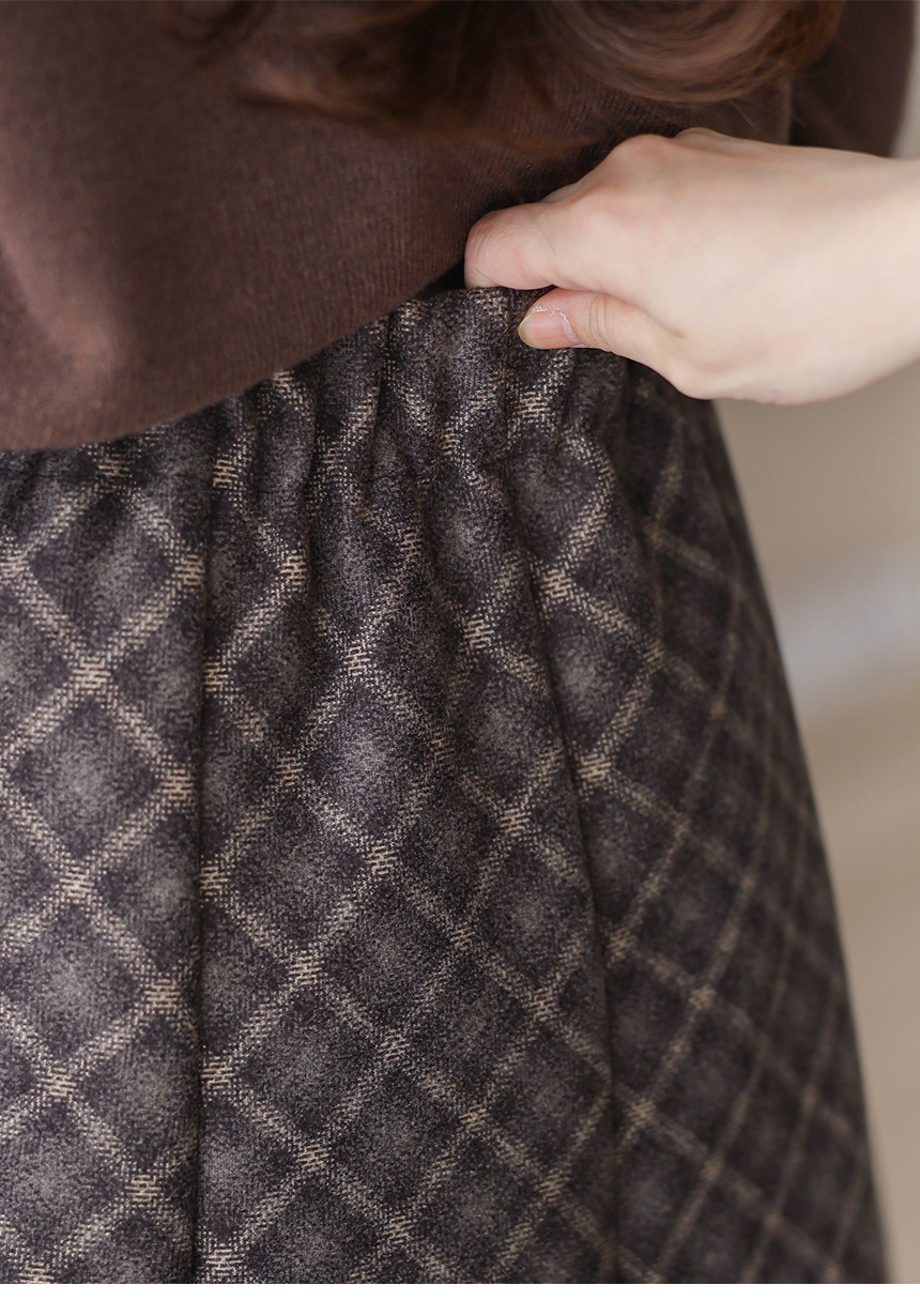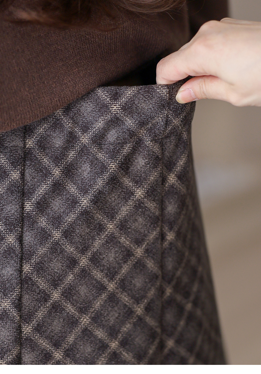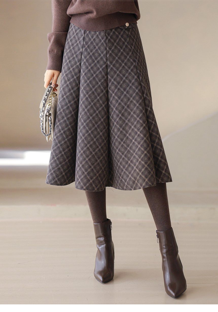블리즈 타탄 체크 뒷밴딩 모직터치감 절개 A라인 플레어 롱 스커트
