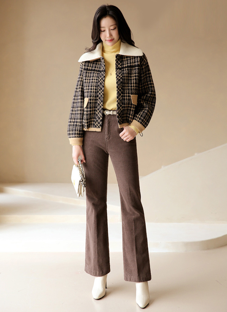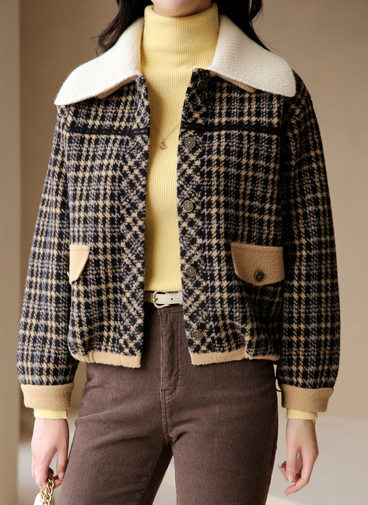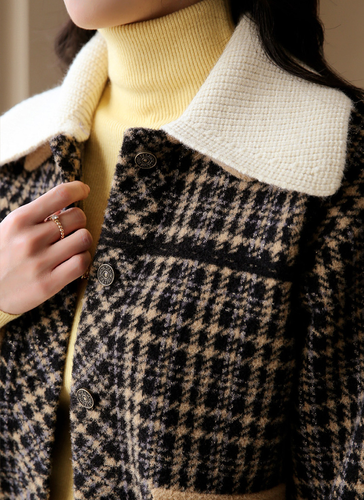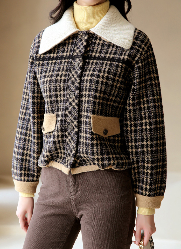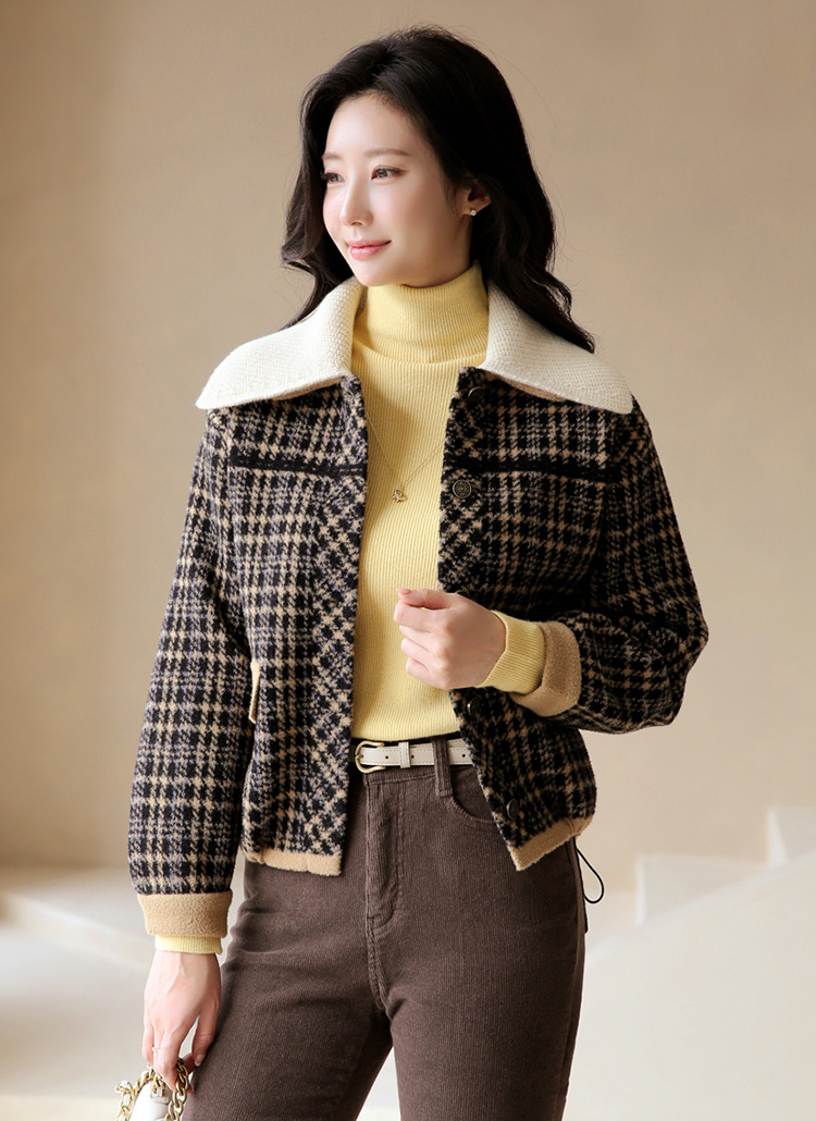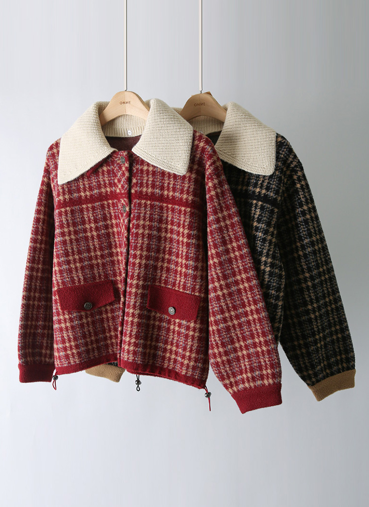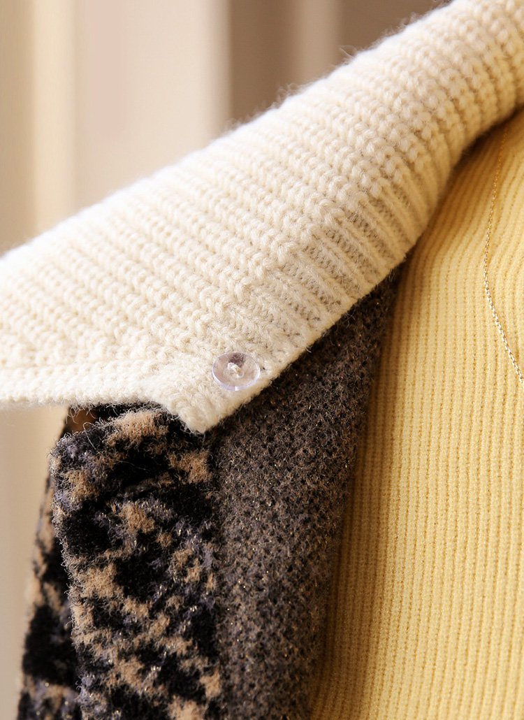 取り外し可能なニットカラー付きチェックニットジャケット cd43255