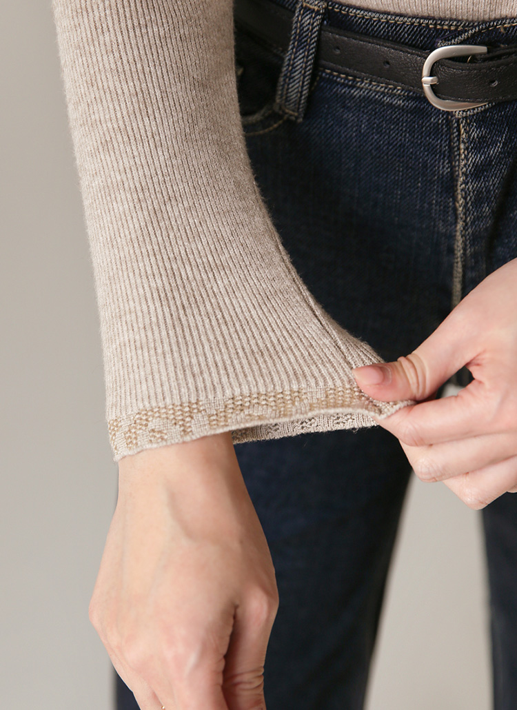 넥라인과 소매 끝에 더해진 잔잔한 쟈가드 포인트가
