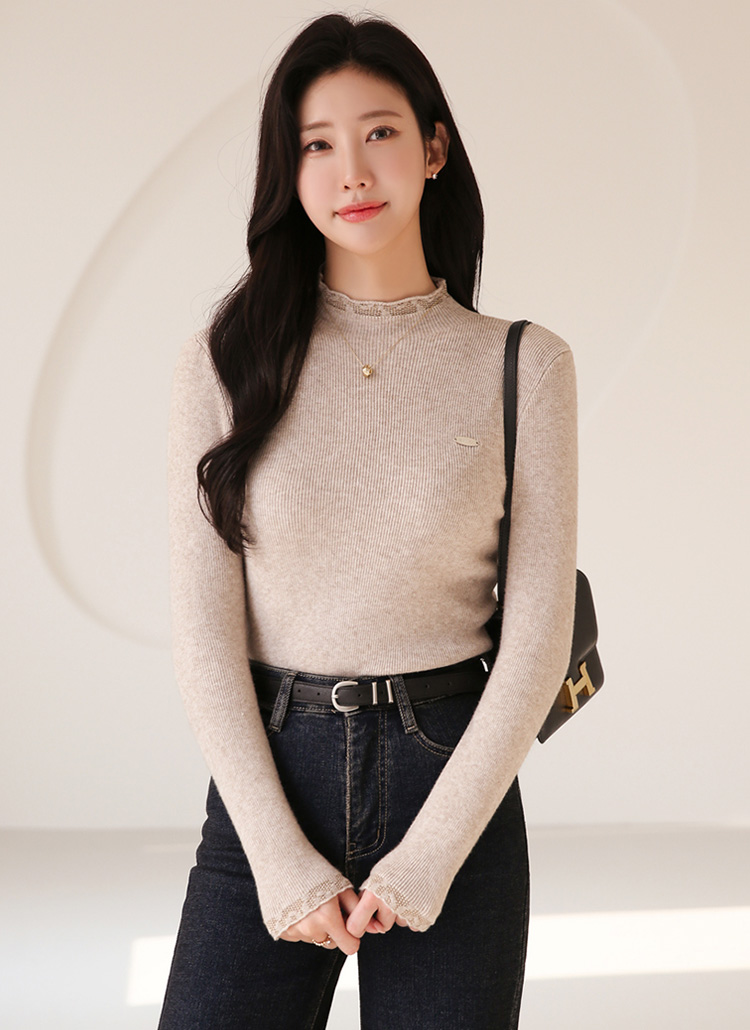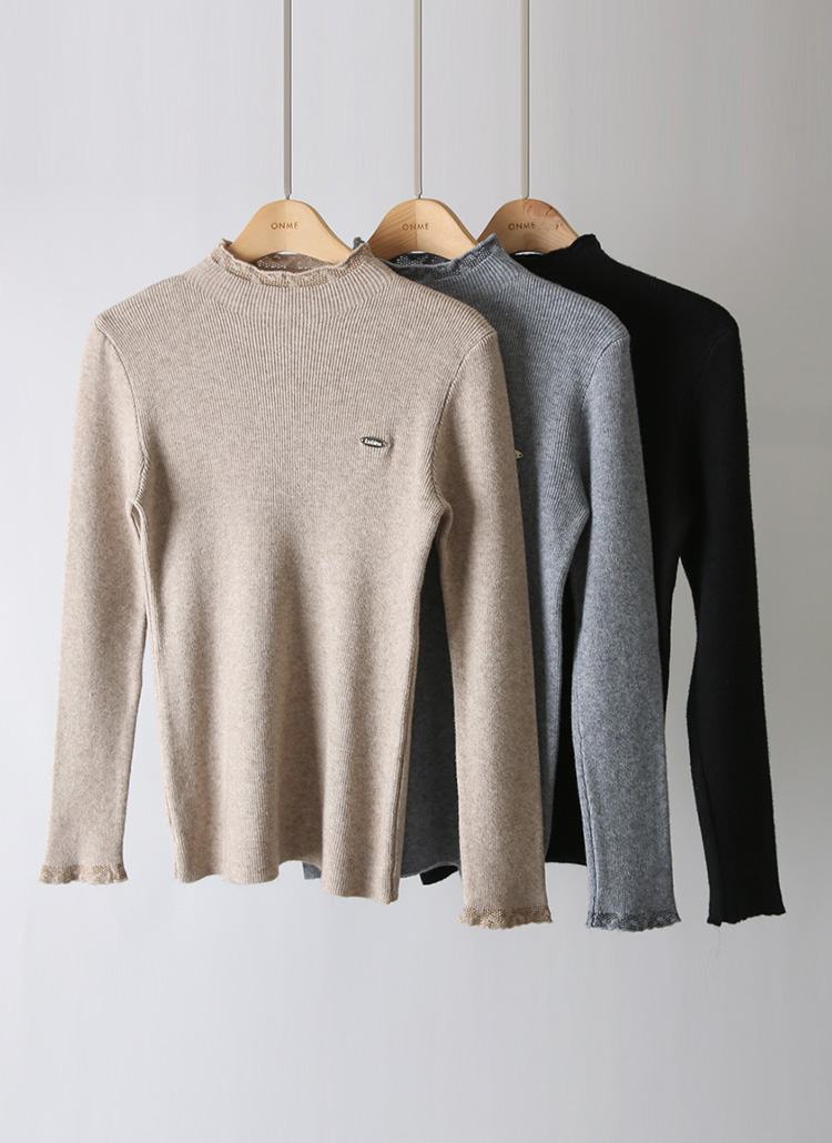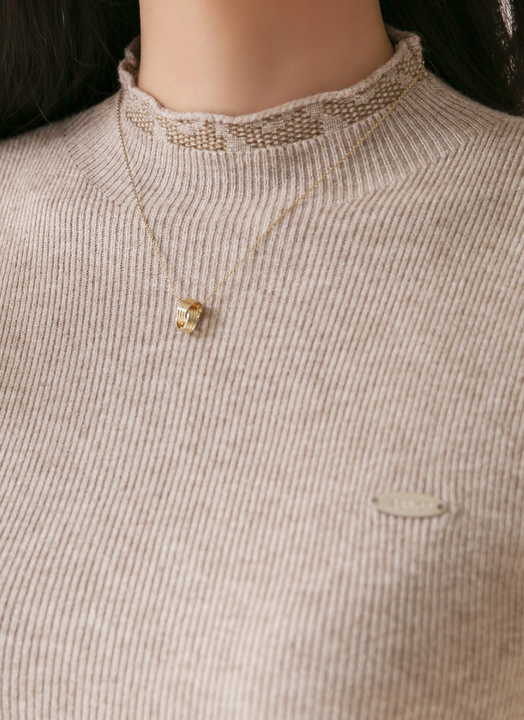 フリルハイネックペンダント付きリブニット nt43281
