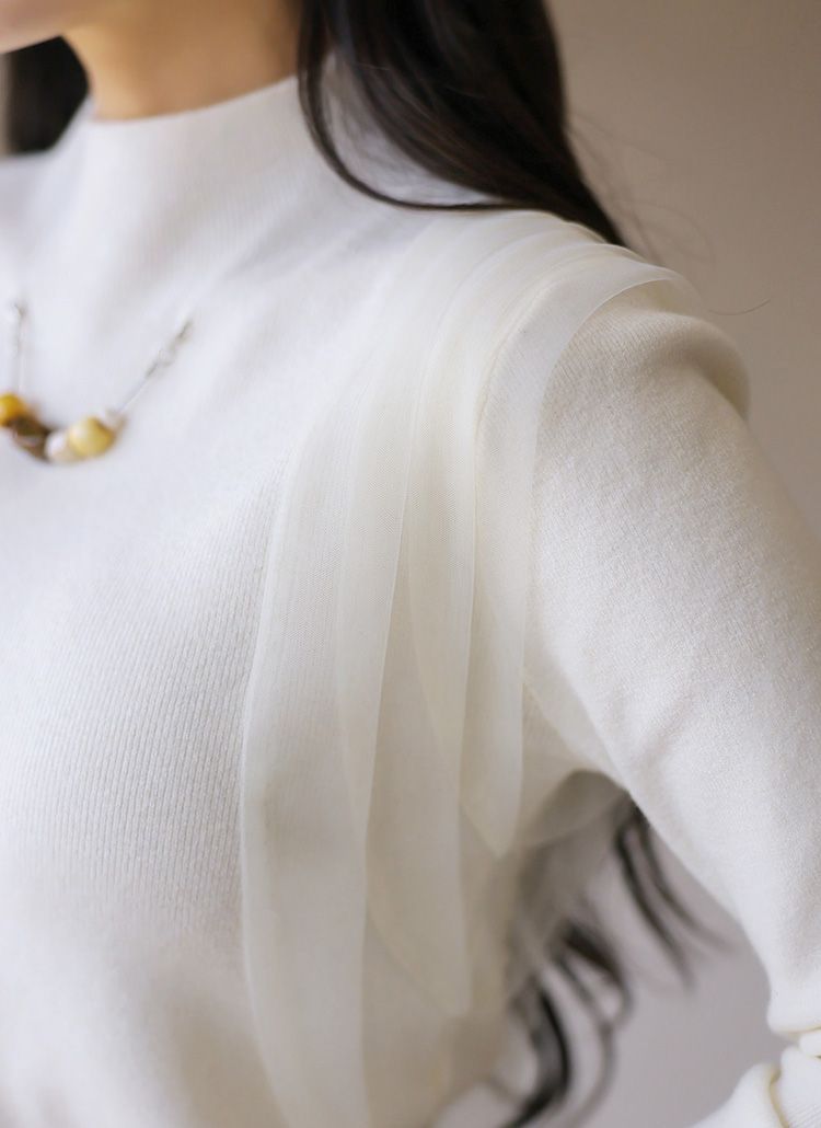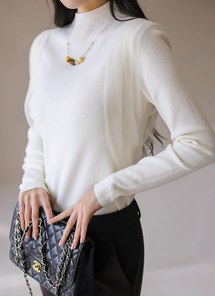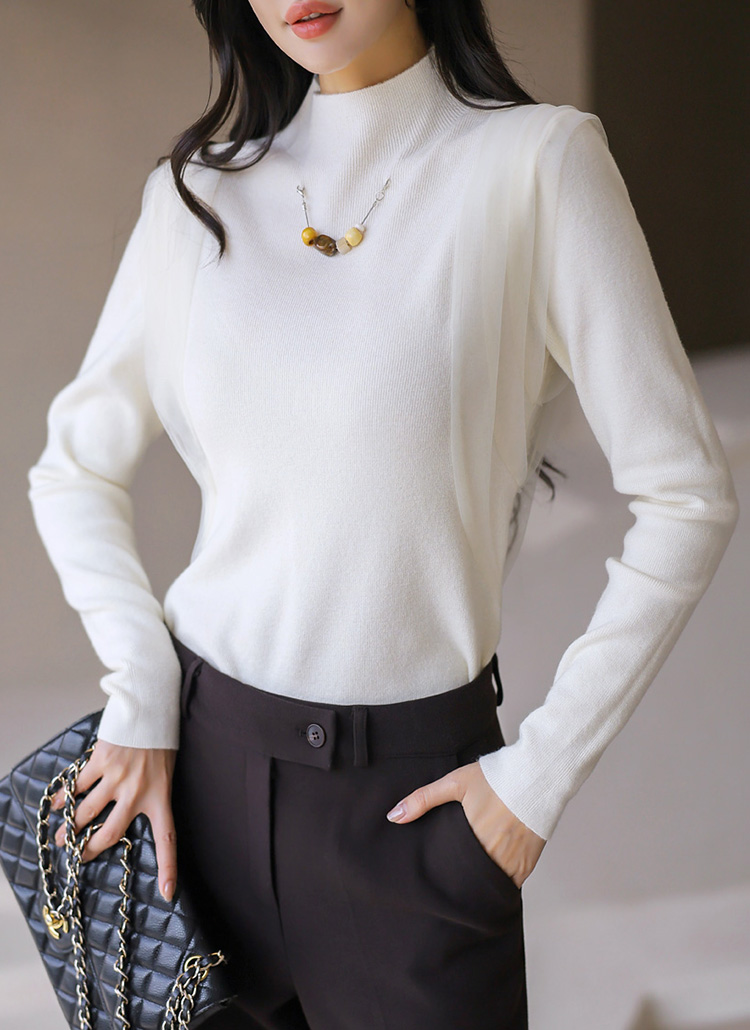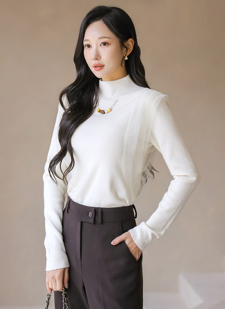 ネックレース付きサイドシフォンハイネックリブニット nt43287