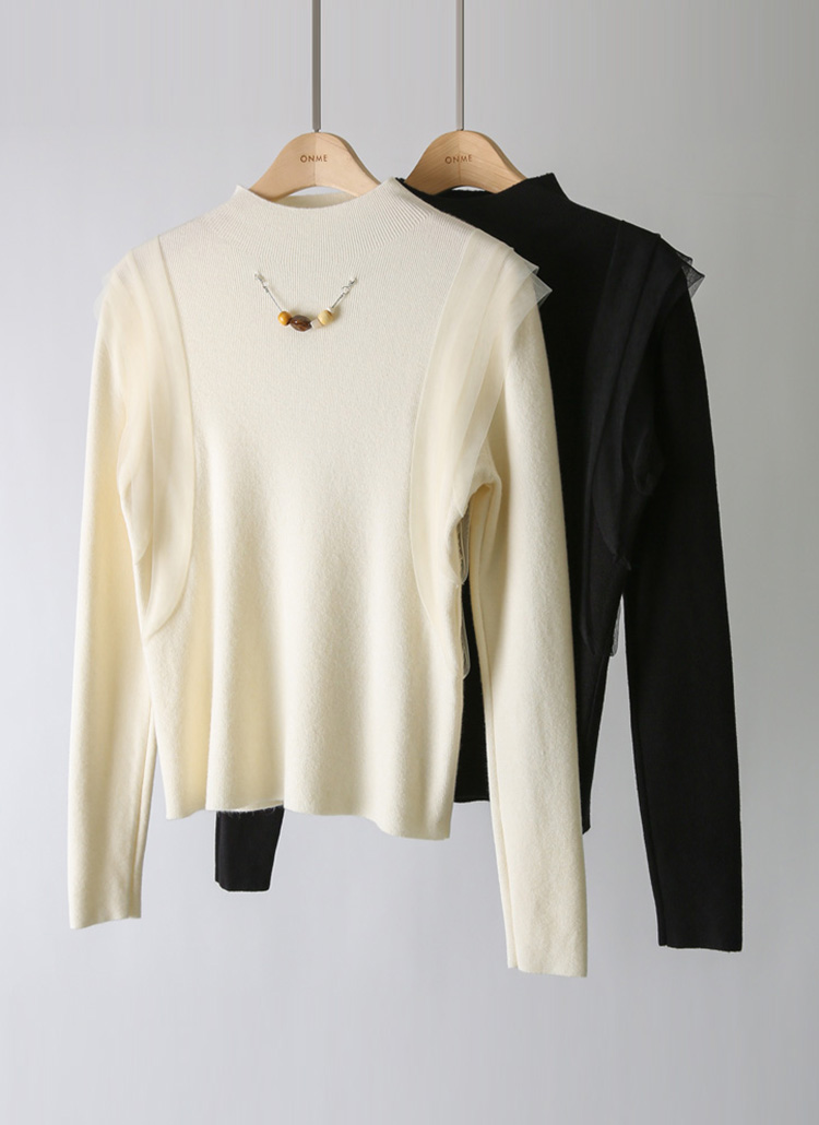 반하이넥 슬림 실루엣에 사랑스러운 디테일을 더한 니트에요