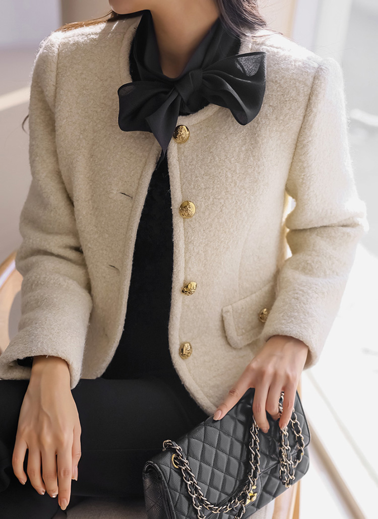 [LouisAngel] ゴールドラメウールノーカラージャケット jk43296