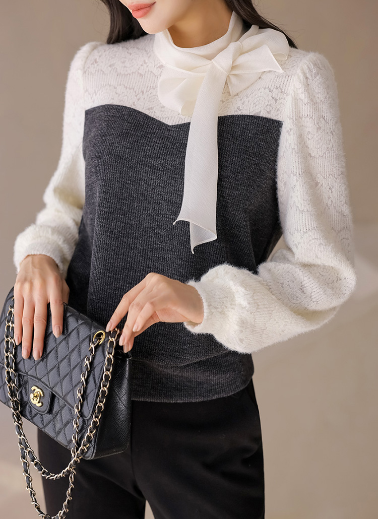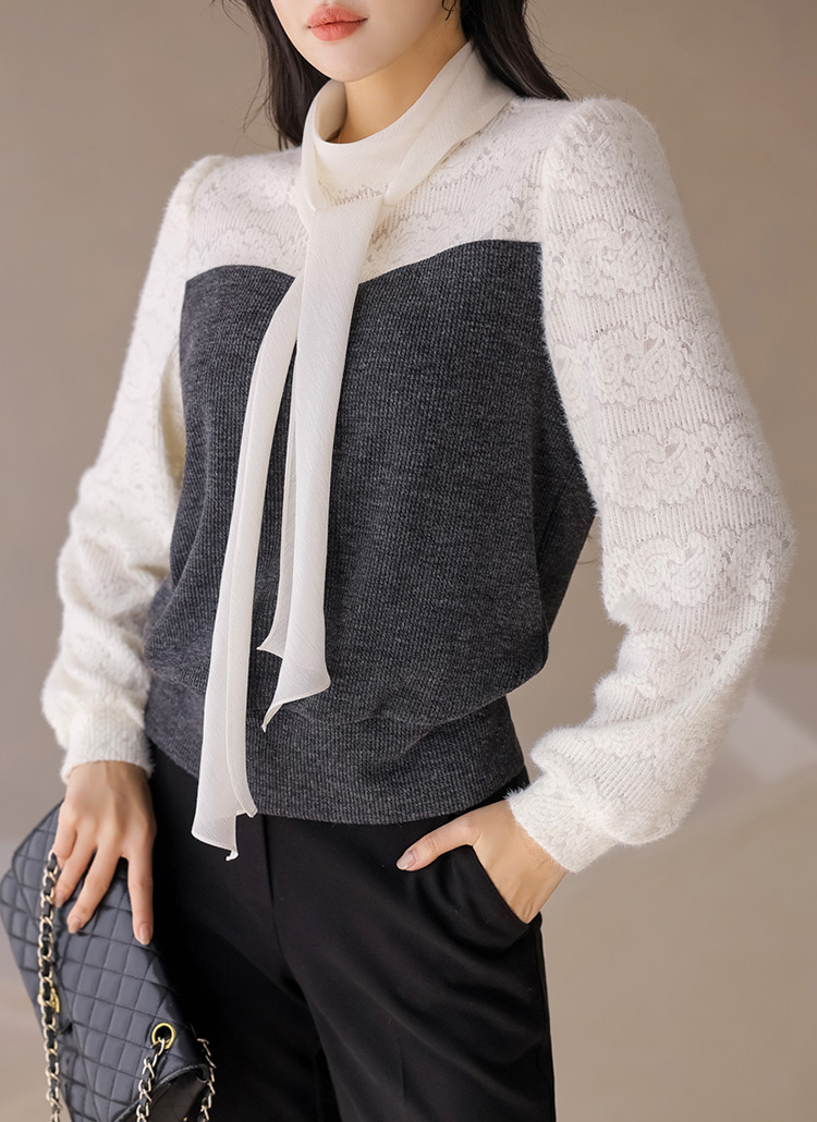 포근포근 날개사 레이스 블라우스와 니트탑을 레이어드 한듯~