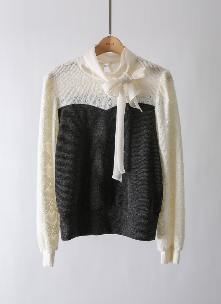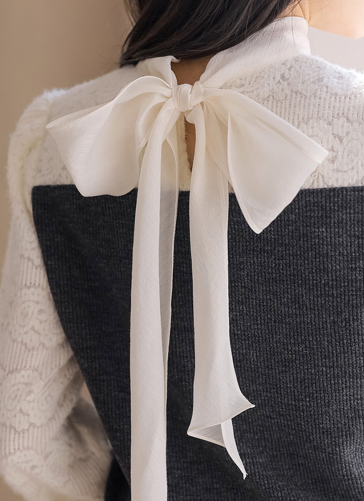 [LouisAngel] フラワー起毛レースドッキング配色リボンタイプルオーバー nt43311
