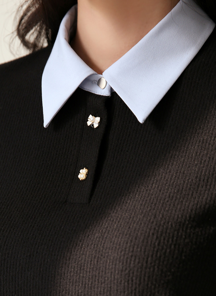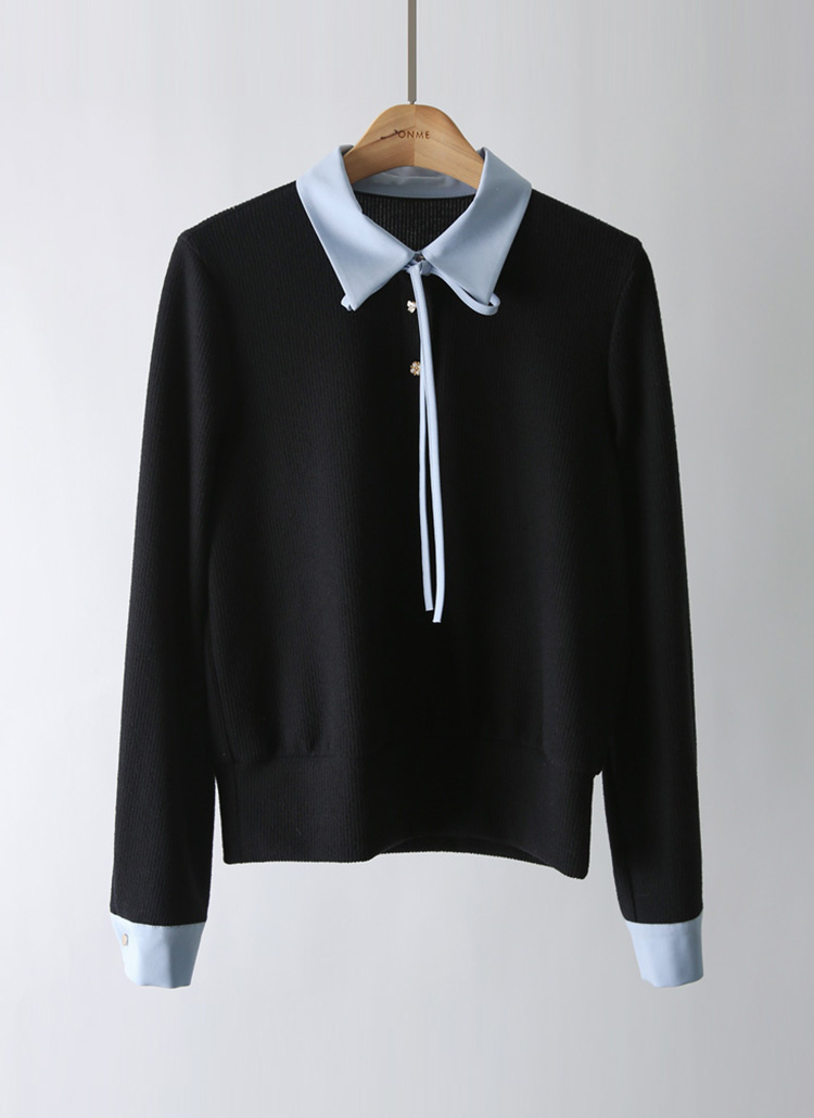 [LouisAngel] バイカラーシャツドッキングリブプルオーバー ts43341