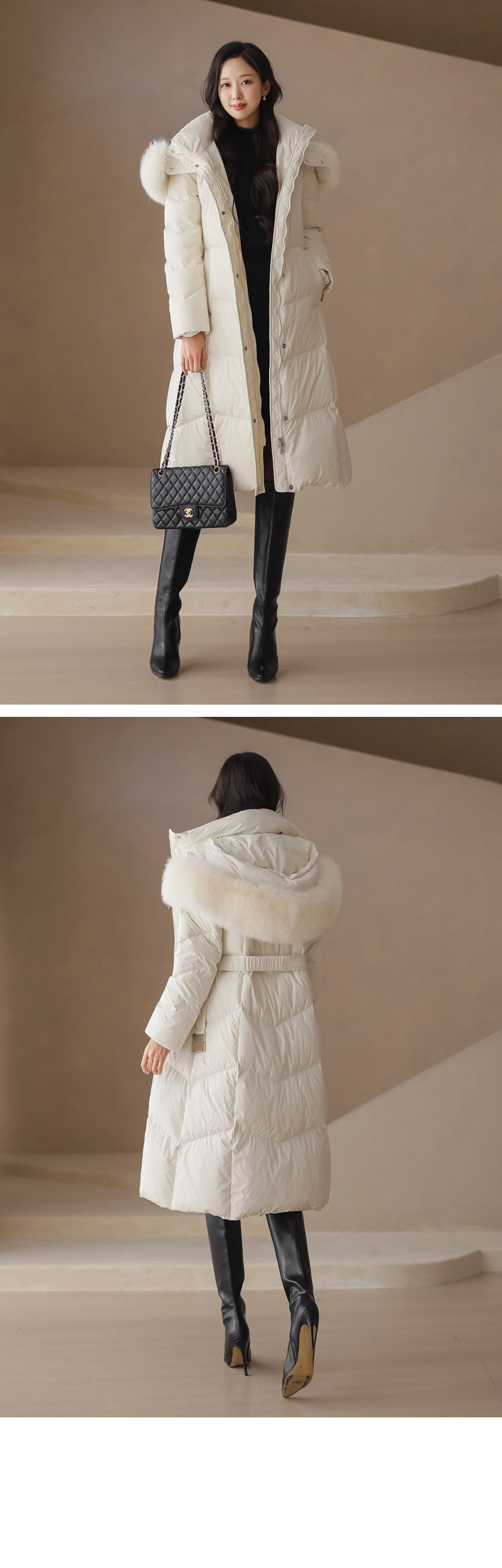 フォックスファーフード付き ベルテッドロングダウンコート jp43353