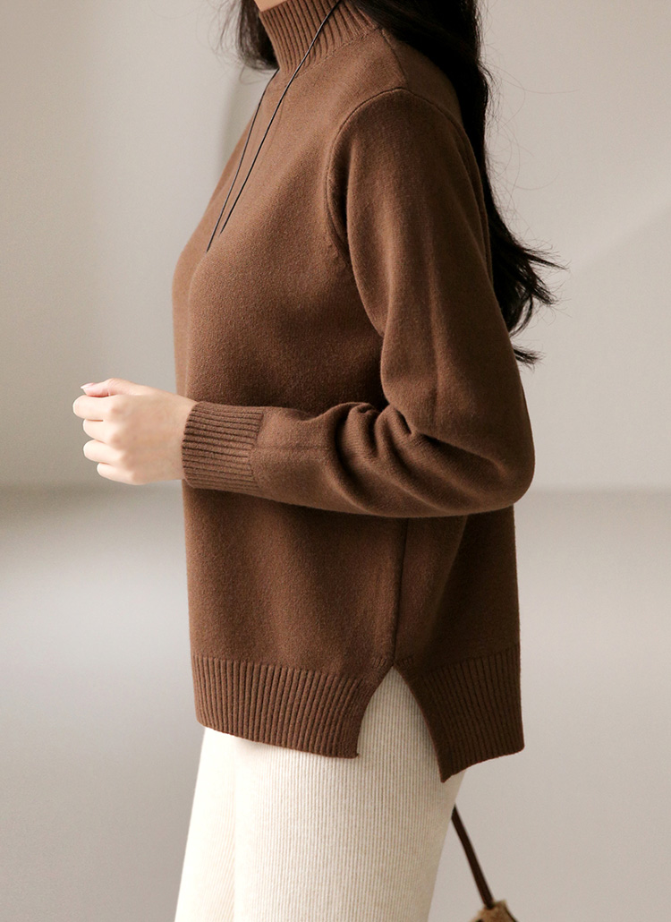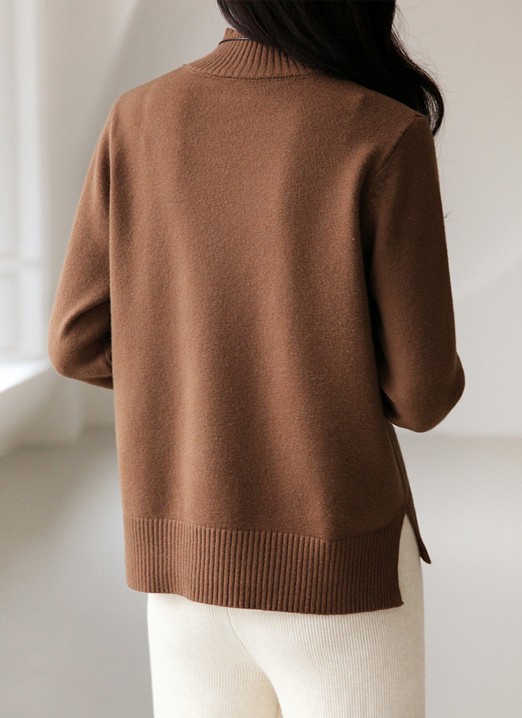 톡톡한 두께감의 니트에 언발 트임 디테일이 더해져