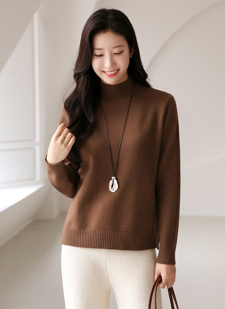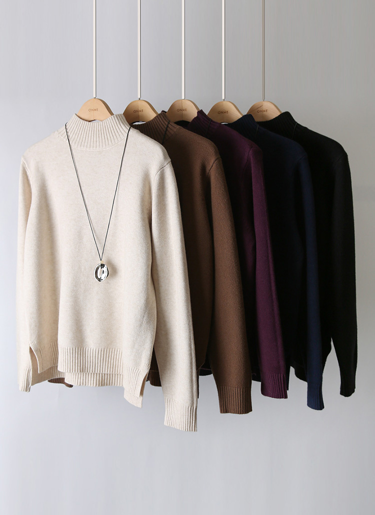 룩의 완성도를 한층 더 높여주는 톡톡한 반목 폴라 니트예요 :)