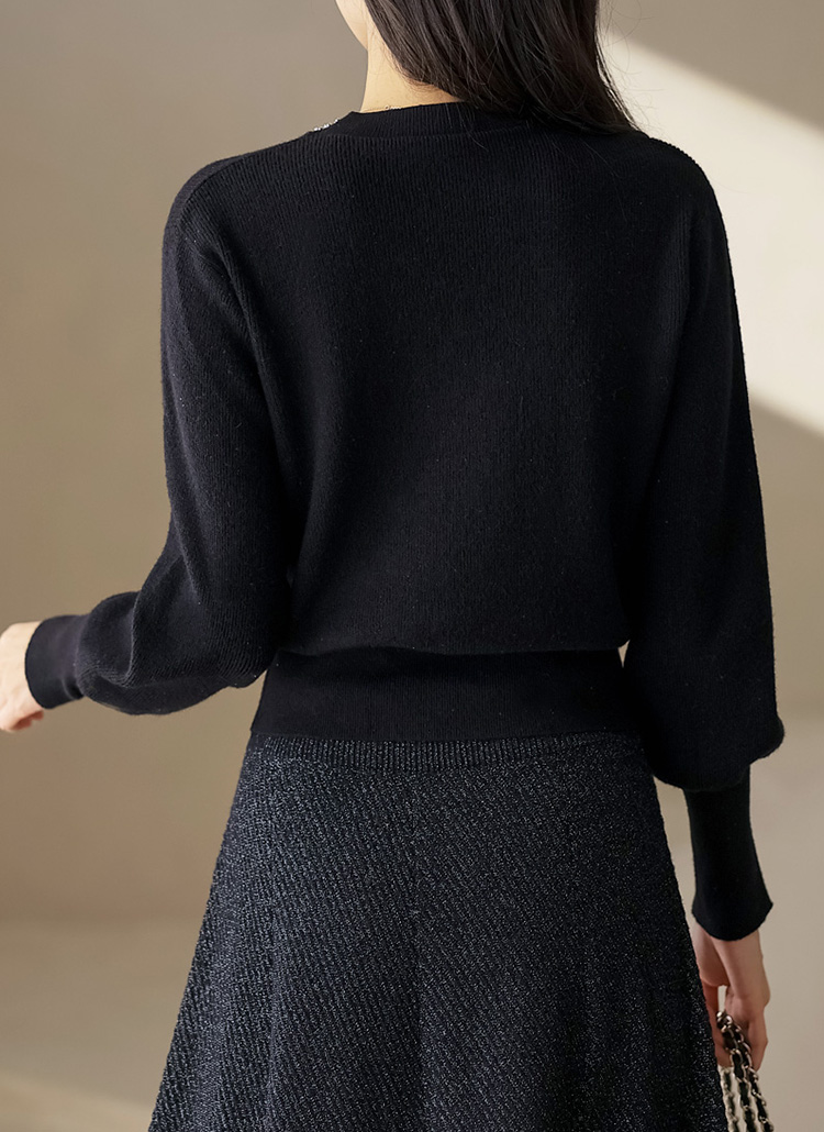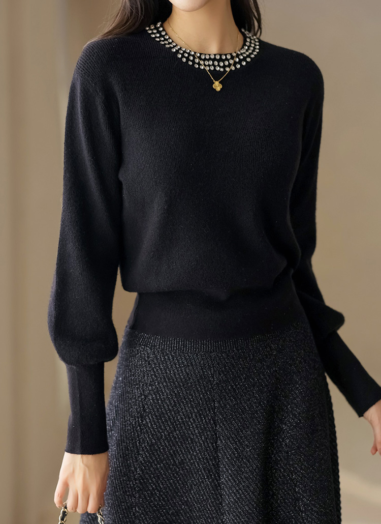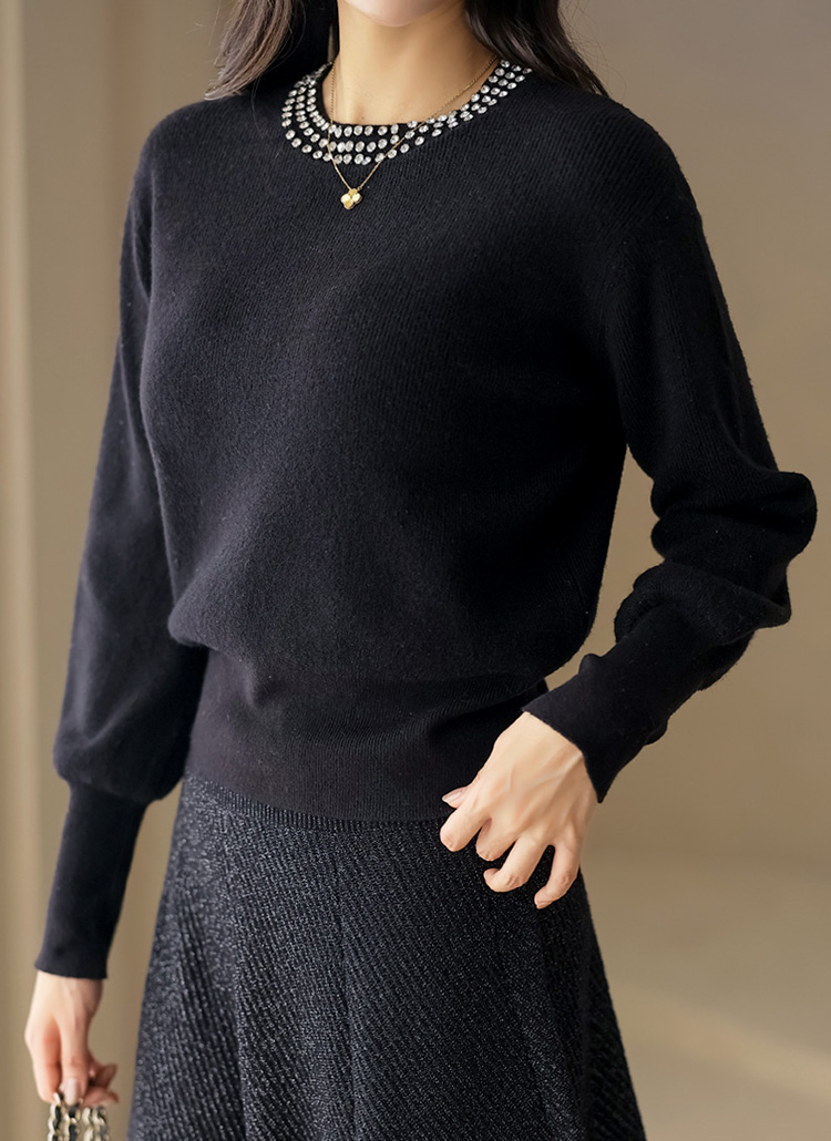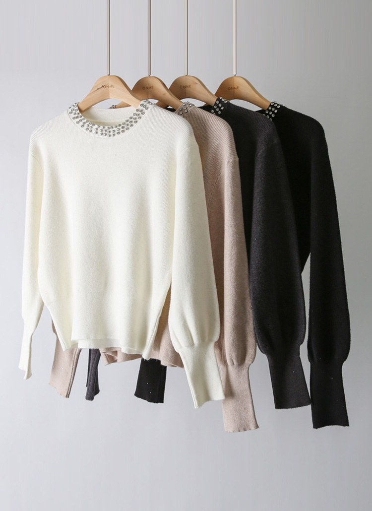 【4色展開】ビジュー付き ラメ入り ボリュームスリーブ ソフトニットnt43368