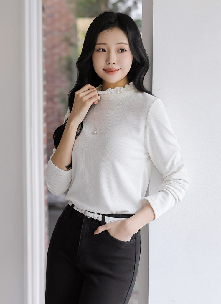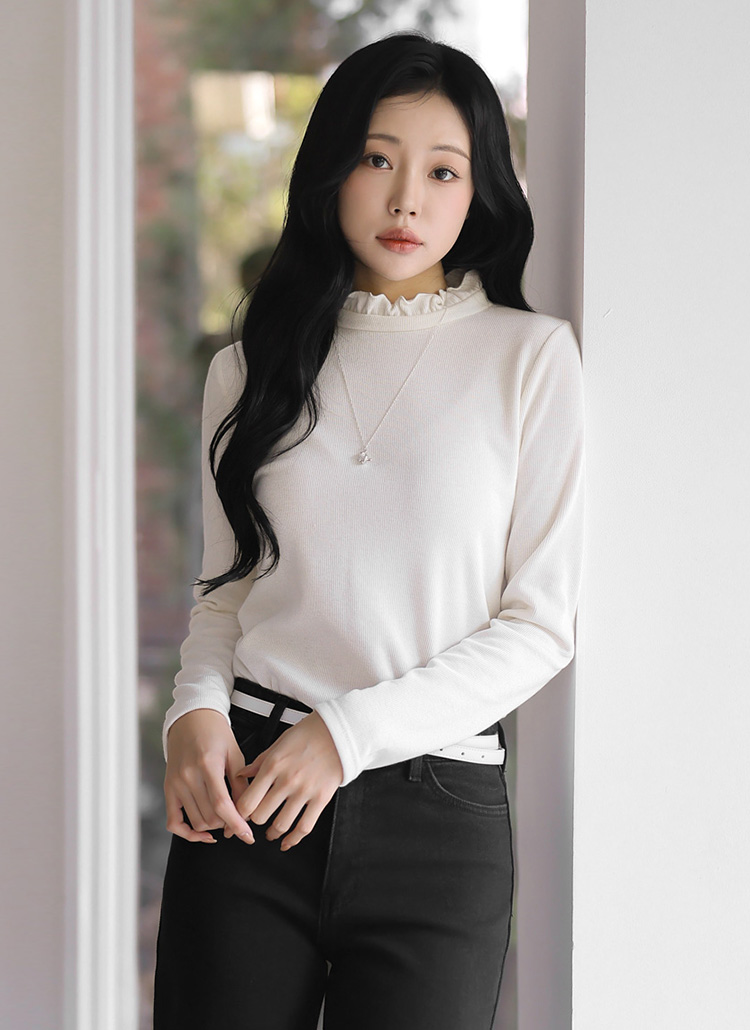 [THE ONME] 裏起毛フリルネックリブプルオーバー ts43401