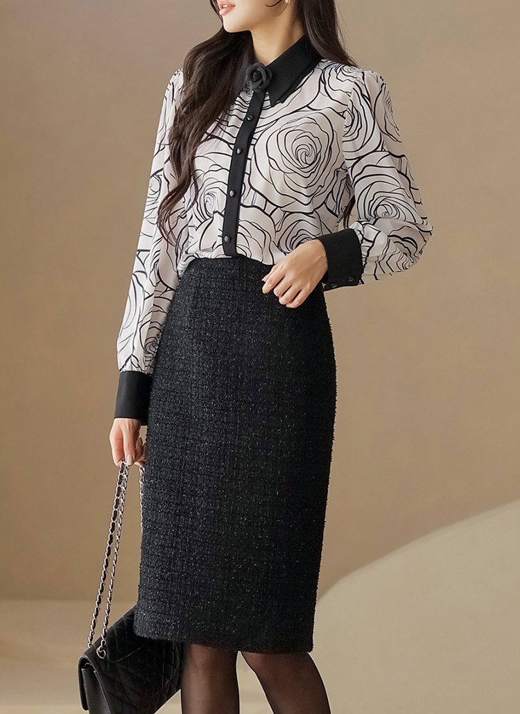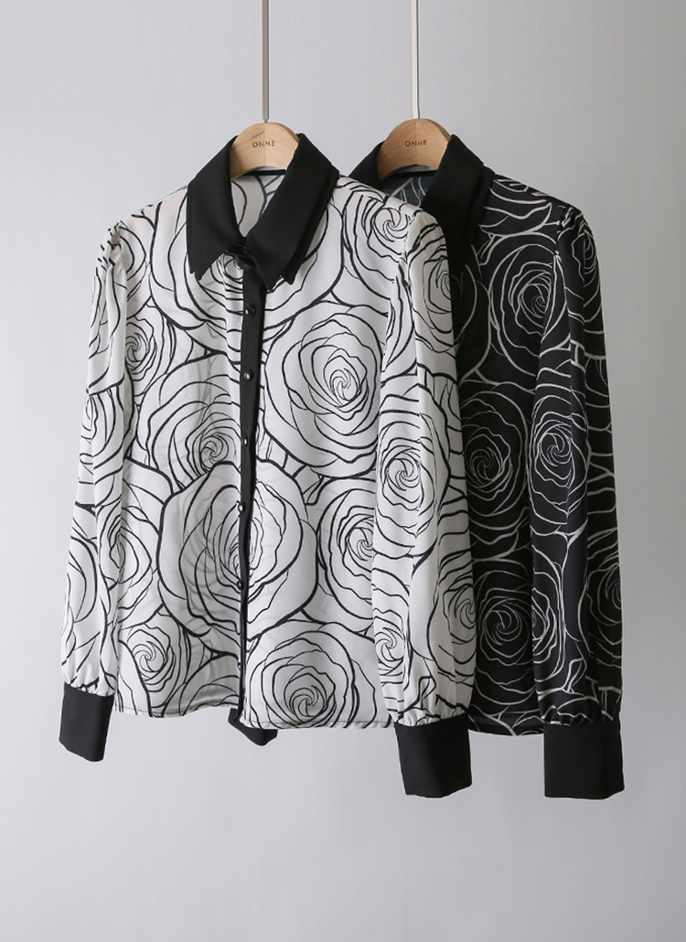 우아하고 고혹적인 분위기를 한껏 담아낸 로즈 패턴 블라우스에요