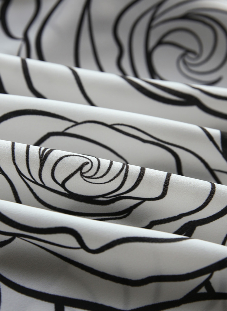 잔잔하게 흐르는 실키한 소재위에 선으로 그려진 장미 패턴이