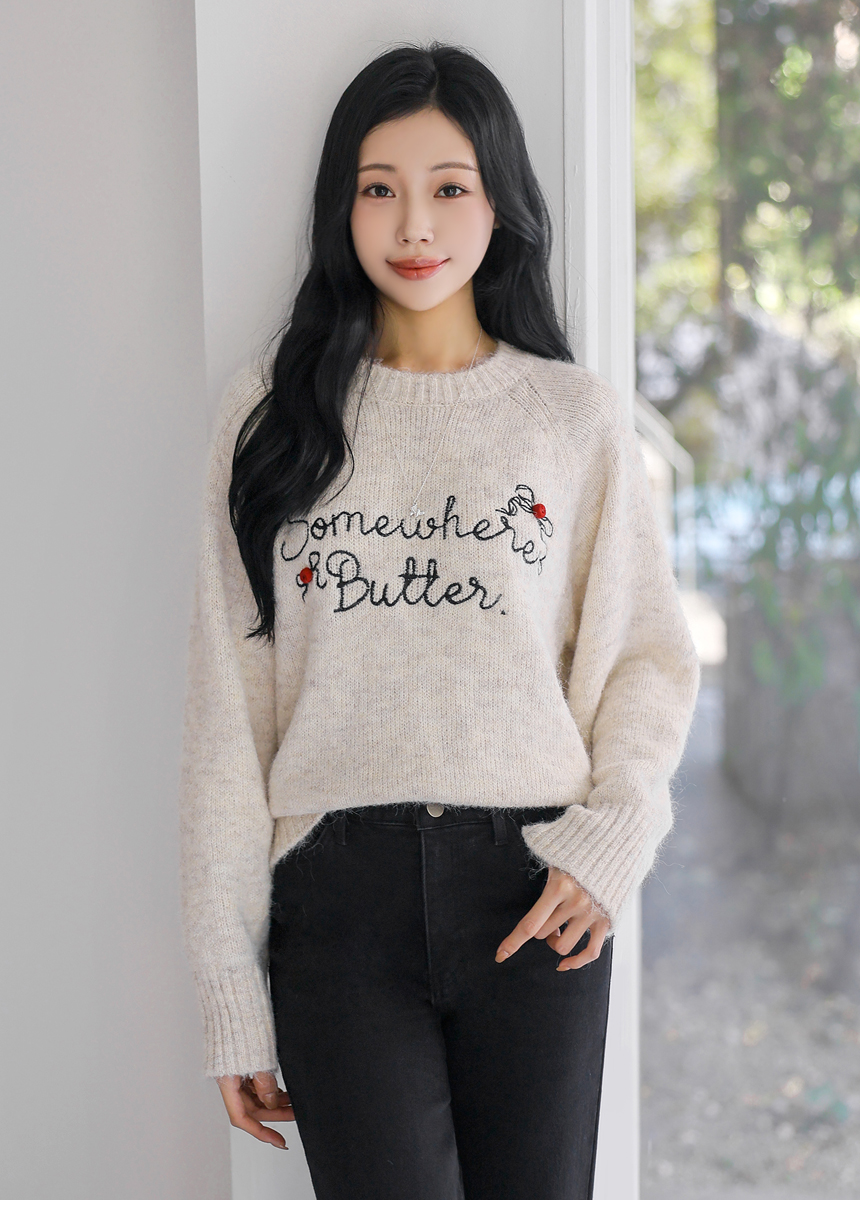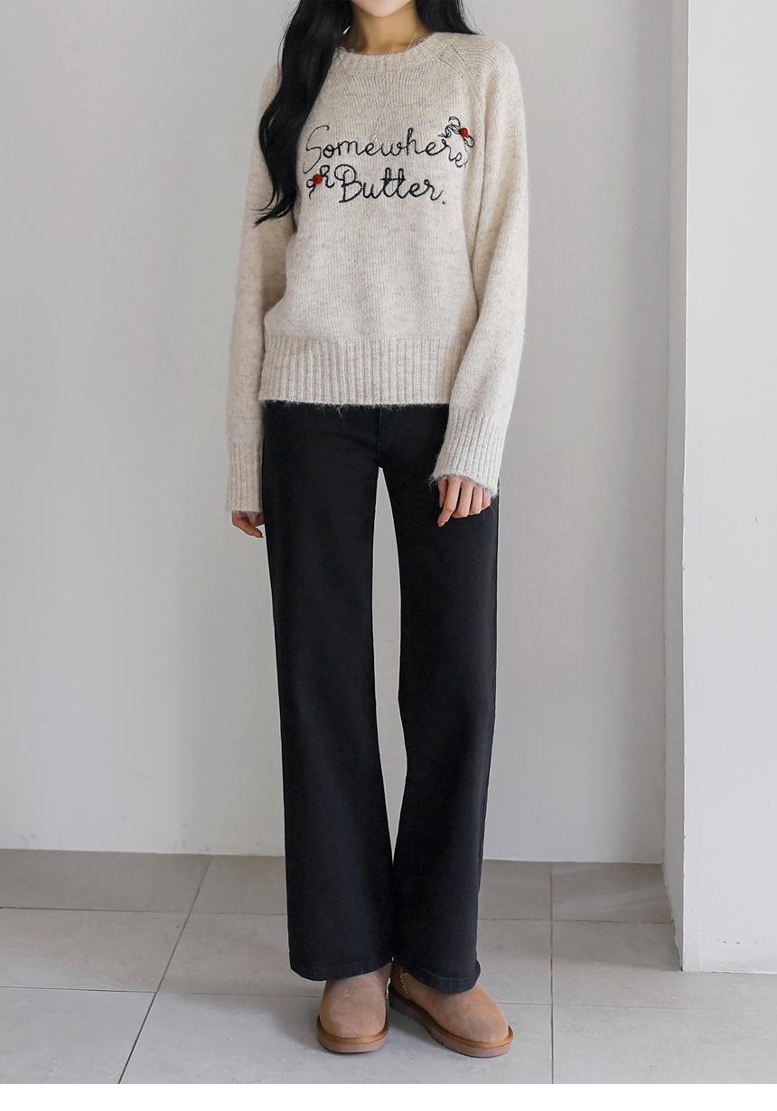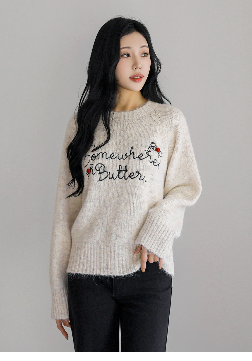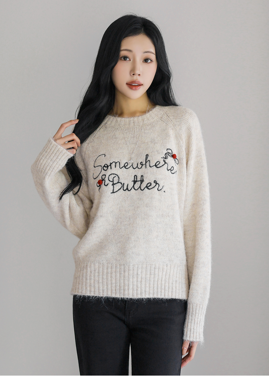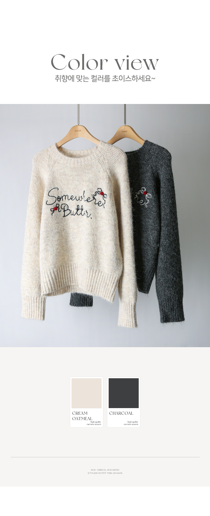 [THE ONME] ウールブレンド レタリング刺繡 クルーネックニットnt43431
