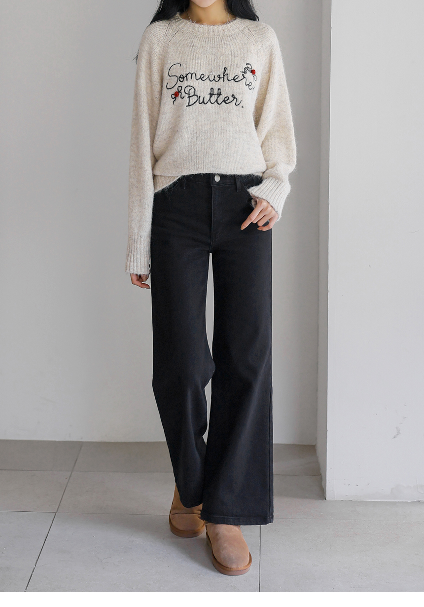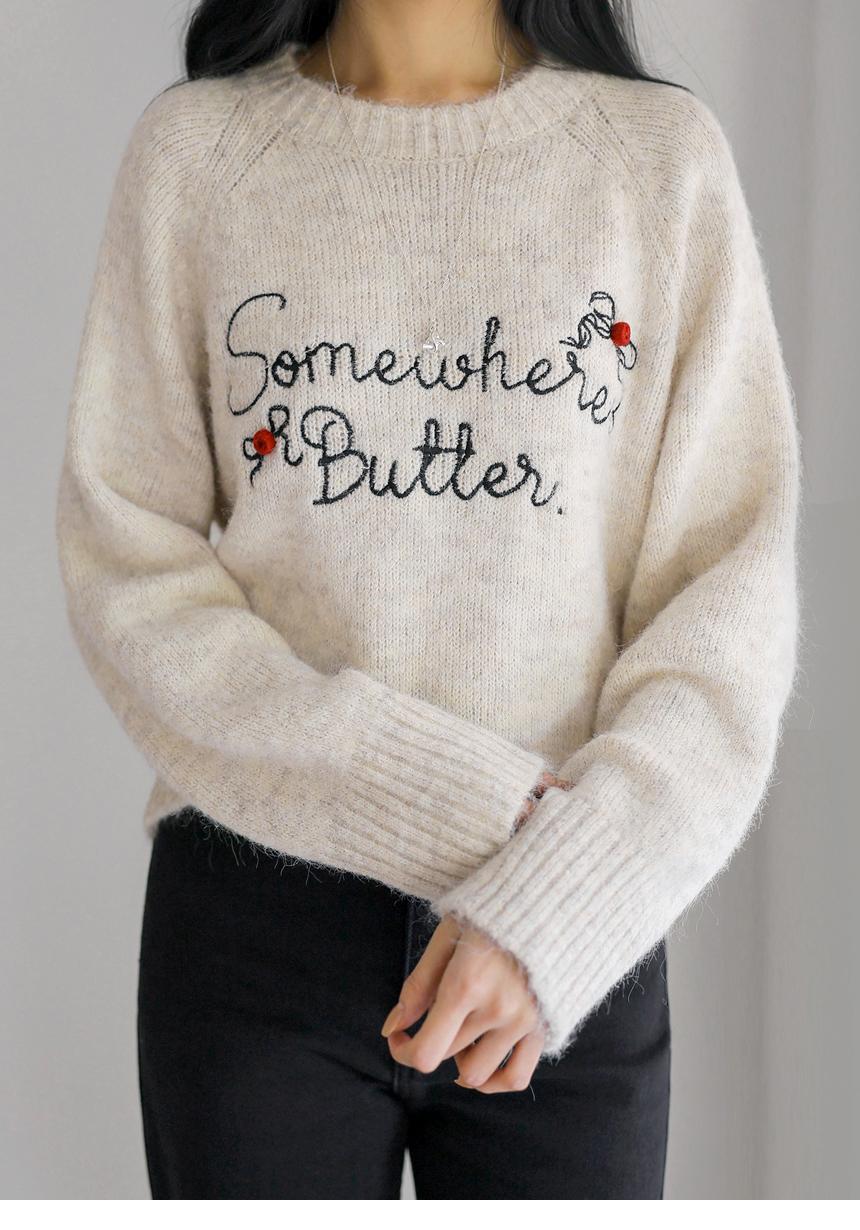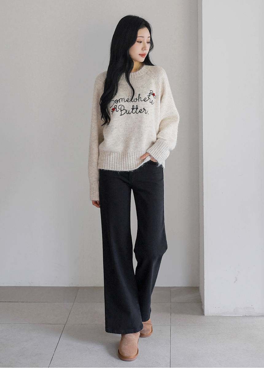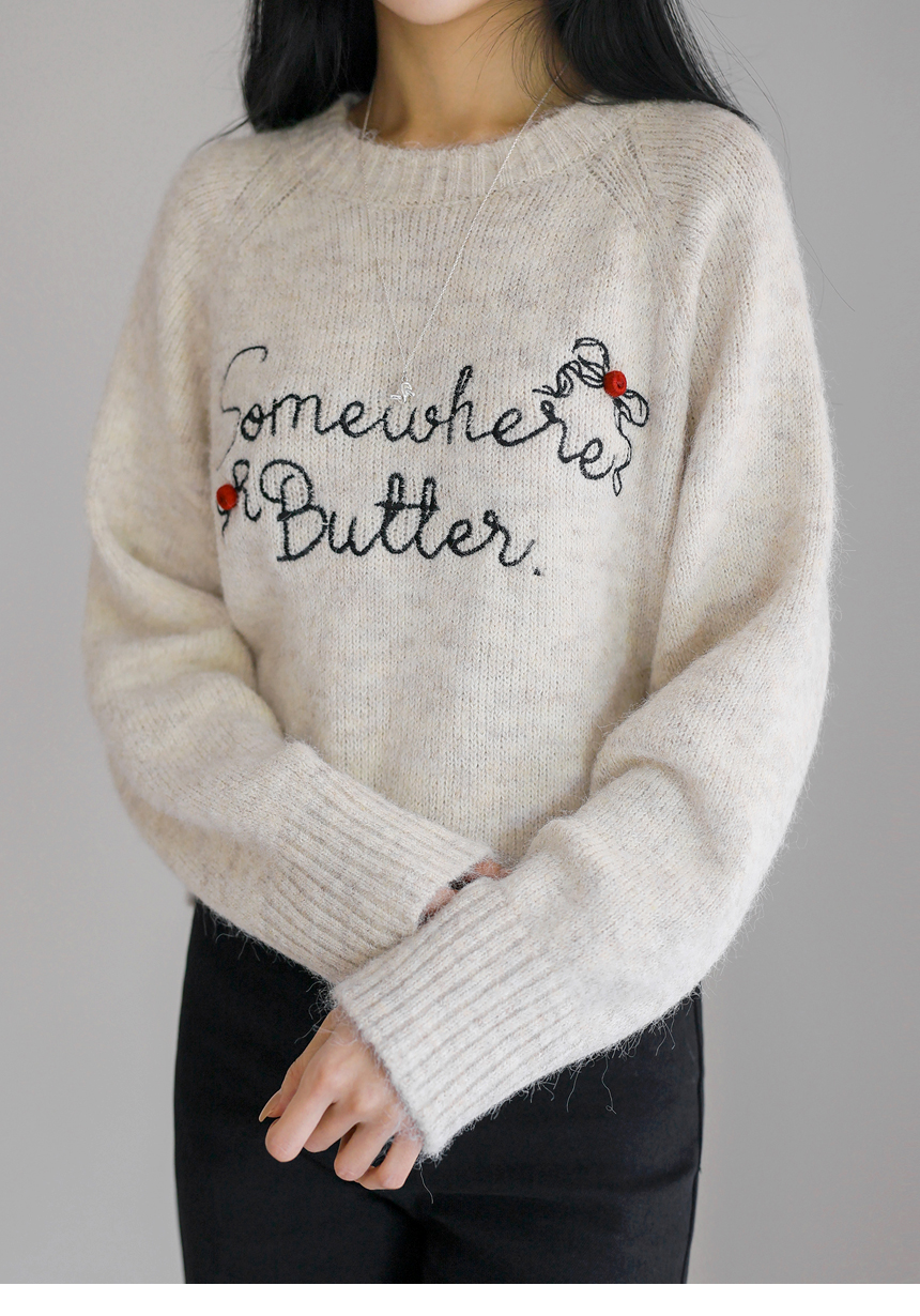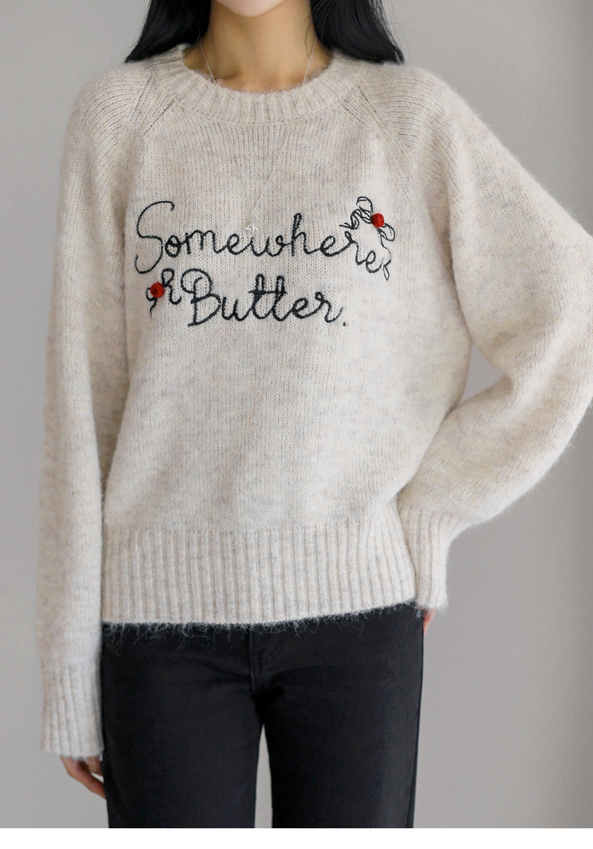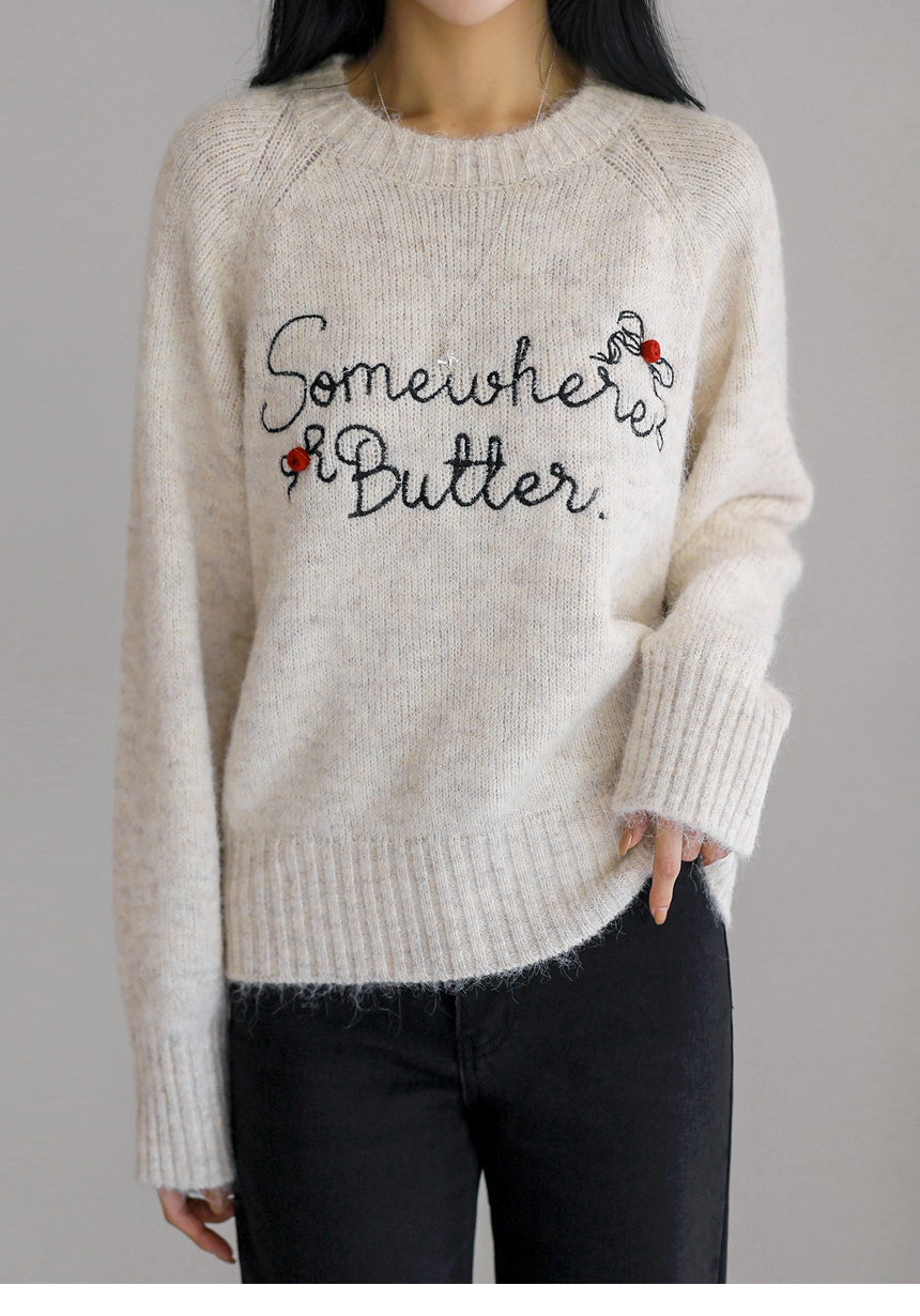[THE ONME] ウールブレンド レタリング刺繡 クルーネックニットnt43431
