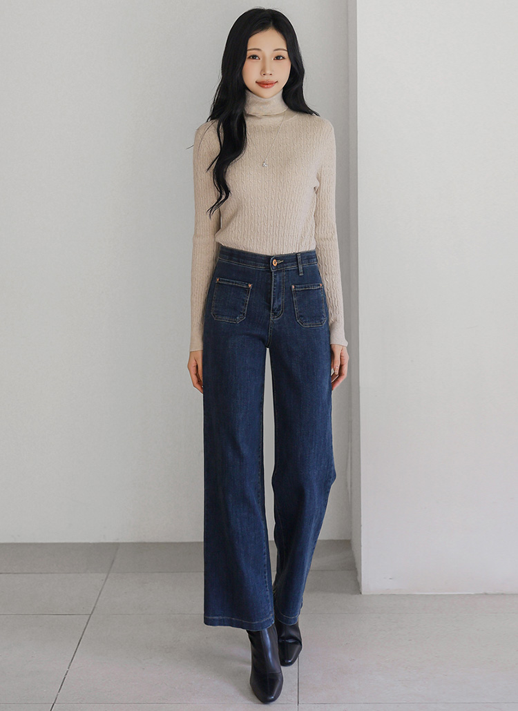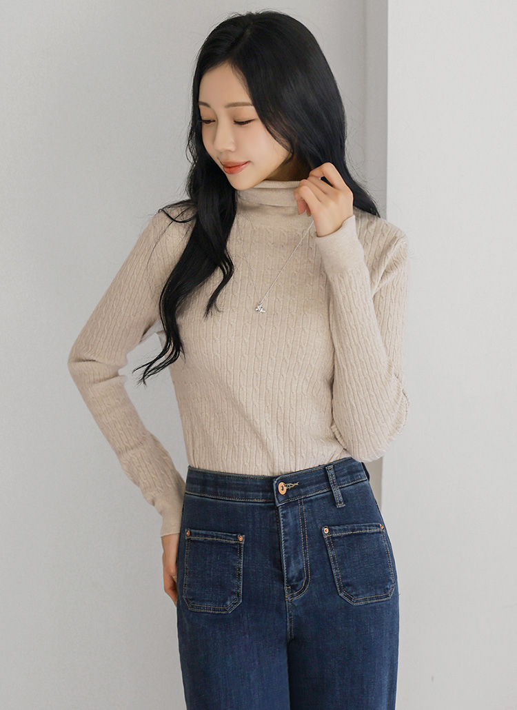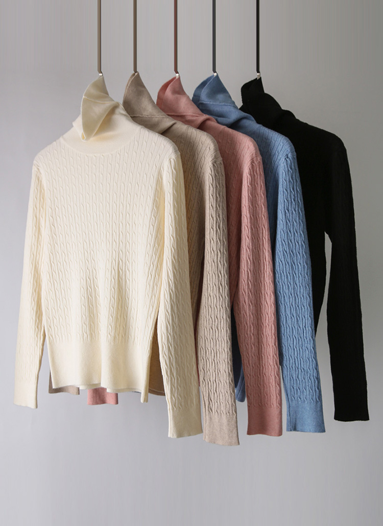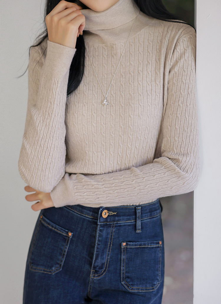 베이직한 꽈배기 패턴의 폴라넥 니트예요 :)